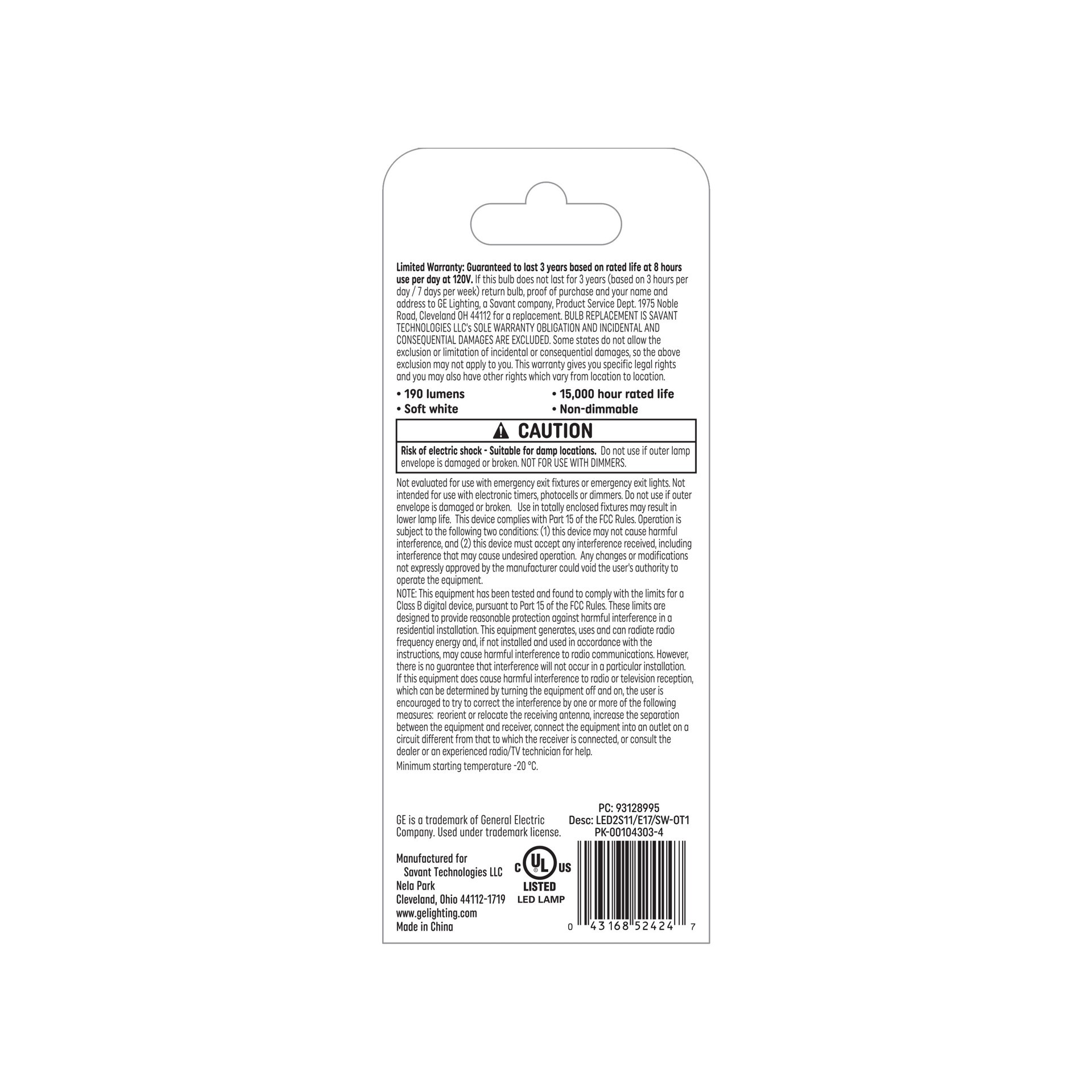 25 Watt replacement using only 2.5 Watts (200 lumens). Warm, soft white high definition light/2700 Kelvin color temperature. Saves 37 dollars on energy costs per bulb versus 25-Watt incandescent over …