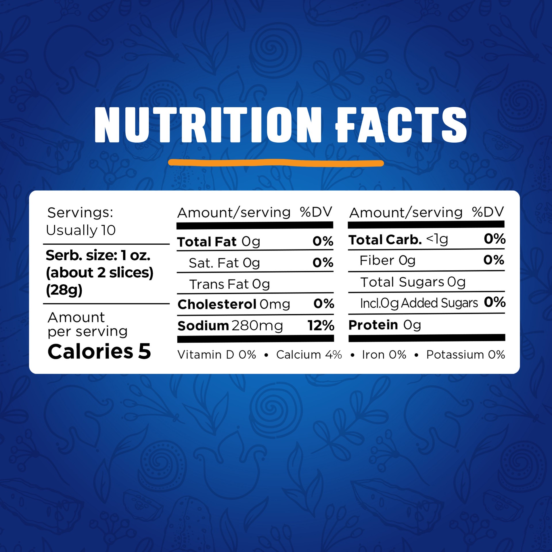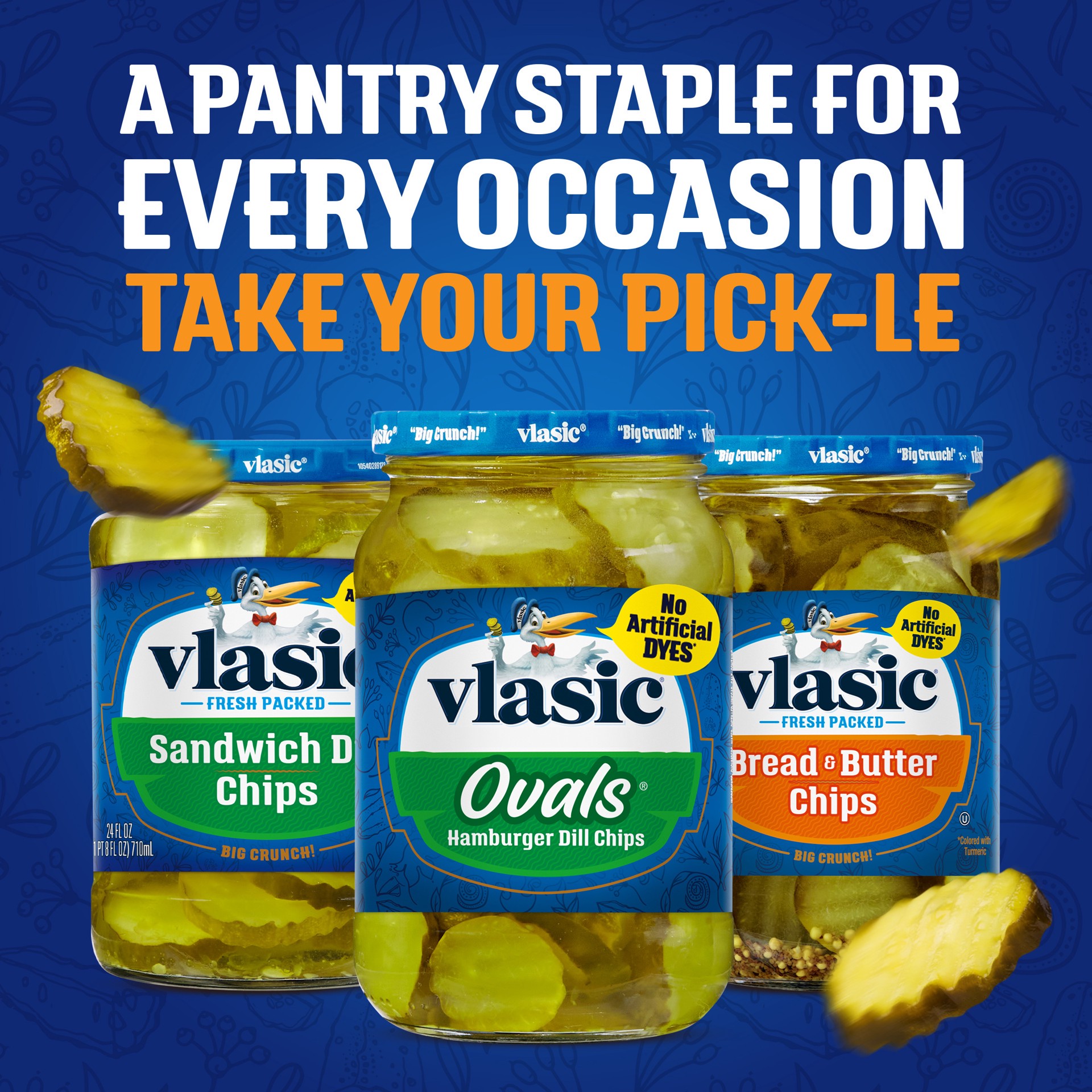 Vlasic Ovals Hamburger Dill Pickle Chips are deliciously crunchy and offer classic dill flavor. All ingredients, along with the Vlasic pickling recipe, make these hamburger dill chips one-of-a-kind. T…