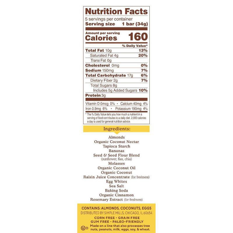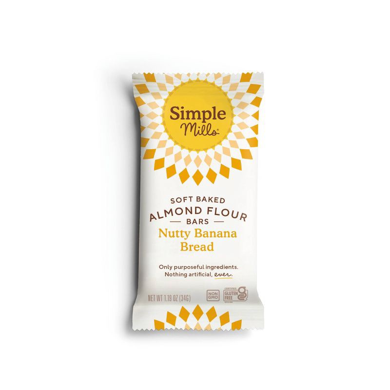 Simple Mills Gluten Free Nutty Banana Bread Soft-Baked Almond Flour Bars - 5ct