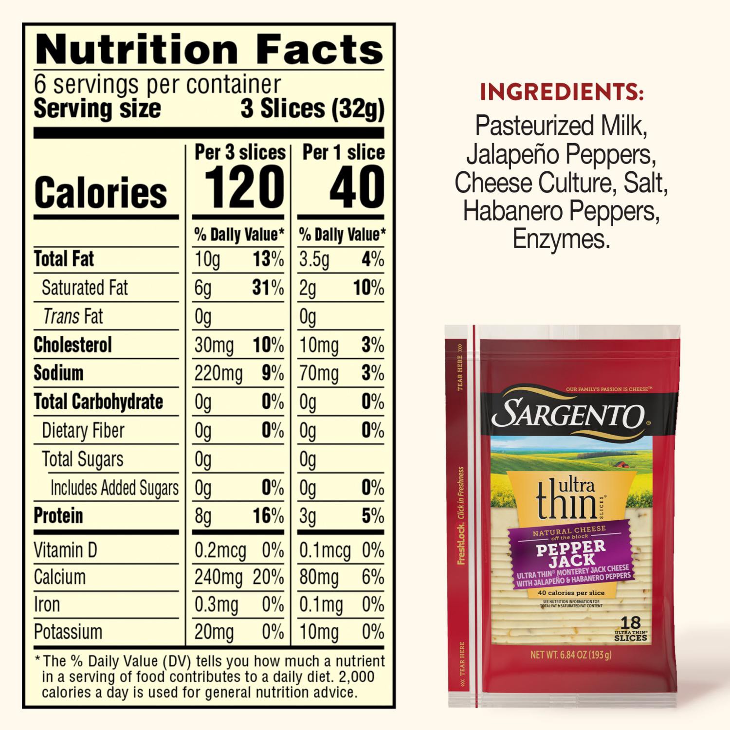 Sargento Ultra Thin Natural Pepper Jack Sliced Cheese, 18 slices, 6.84 oz
