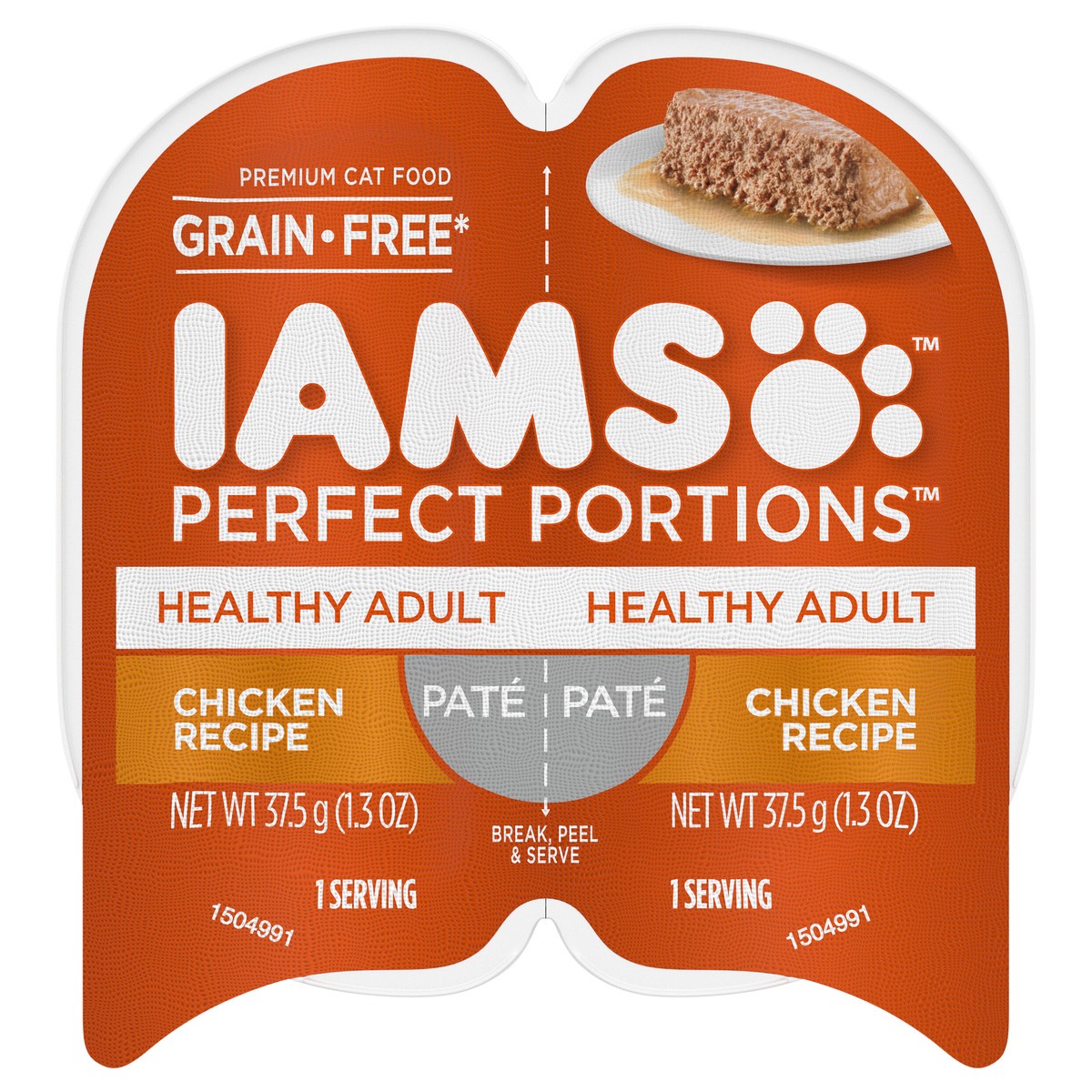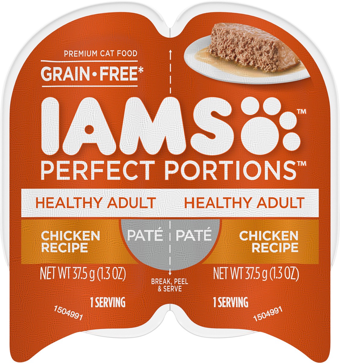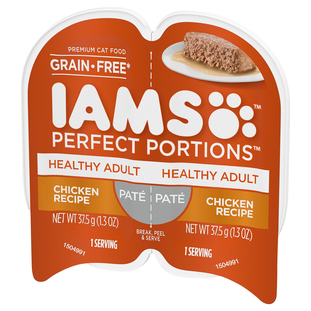 Calorie Content (Calculated) : 1207 kcal ME/kg. 45 kcal ME/serving. IAMS Perfect Portions Pate Healthy Adult Chicken Recipe is formulated to meet the nutritional levels established by the AAFCO Cat Fo…