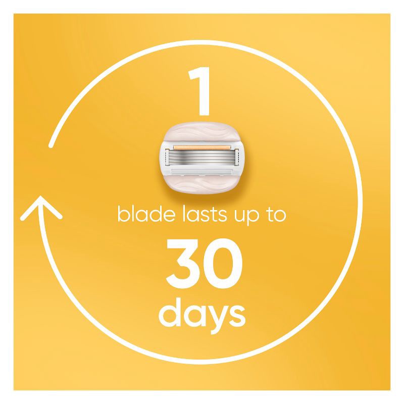 - 5-BLADE RAZOR: Utra-sharp blades for visibly smooth and soft skin with every stroke. Each refill lasts up to 30 days based on 2x/week shave