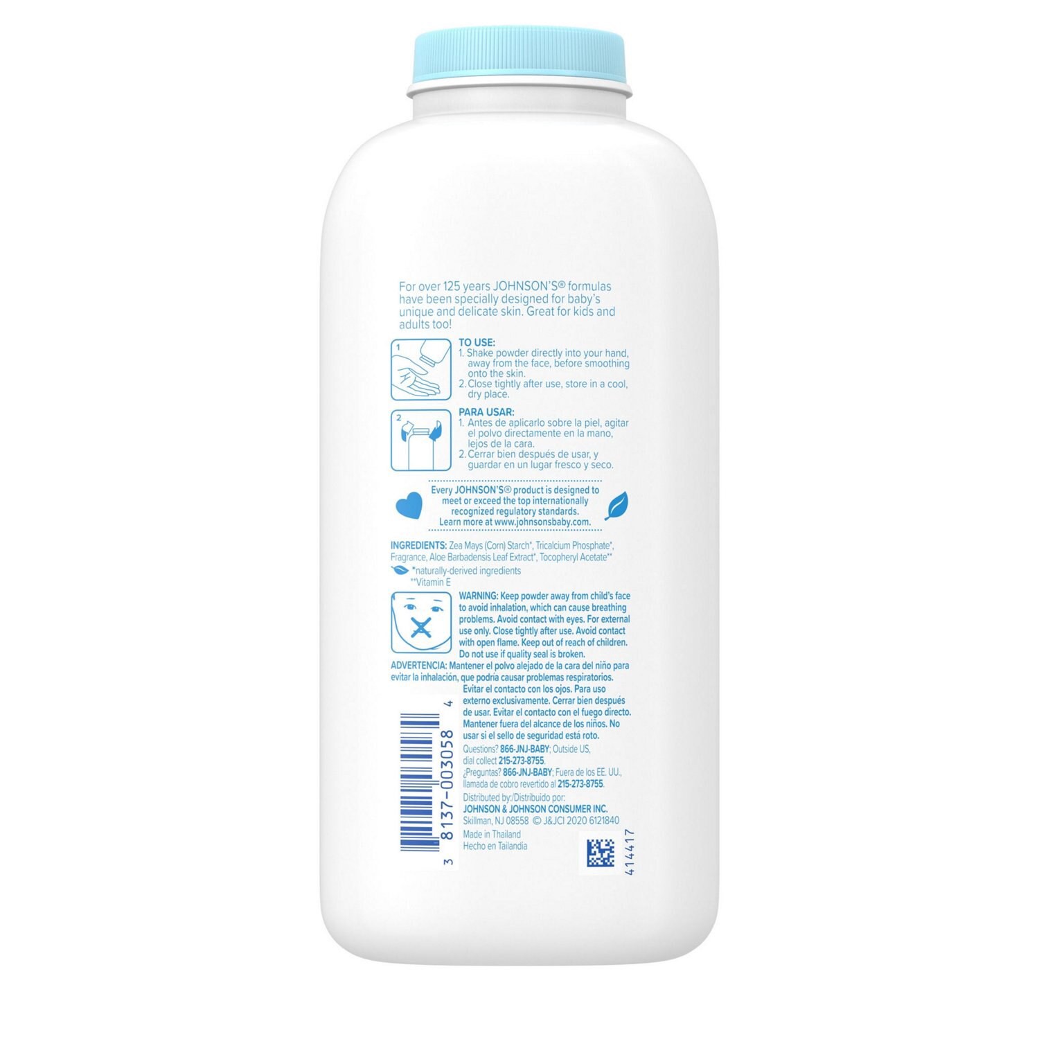 Johnson's baby powder with naturally derived cornstarch and Aloe & Vitamin E gently absorbs moisture to soothe baby's delicate and unique skin and leaves it feeling soft and smooth. Specially formulat…