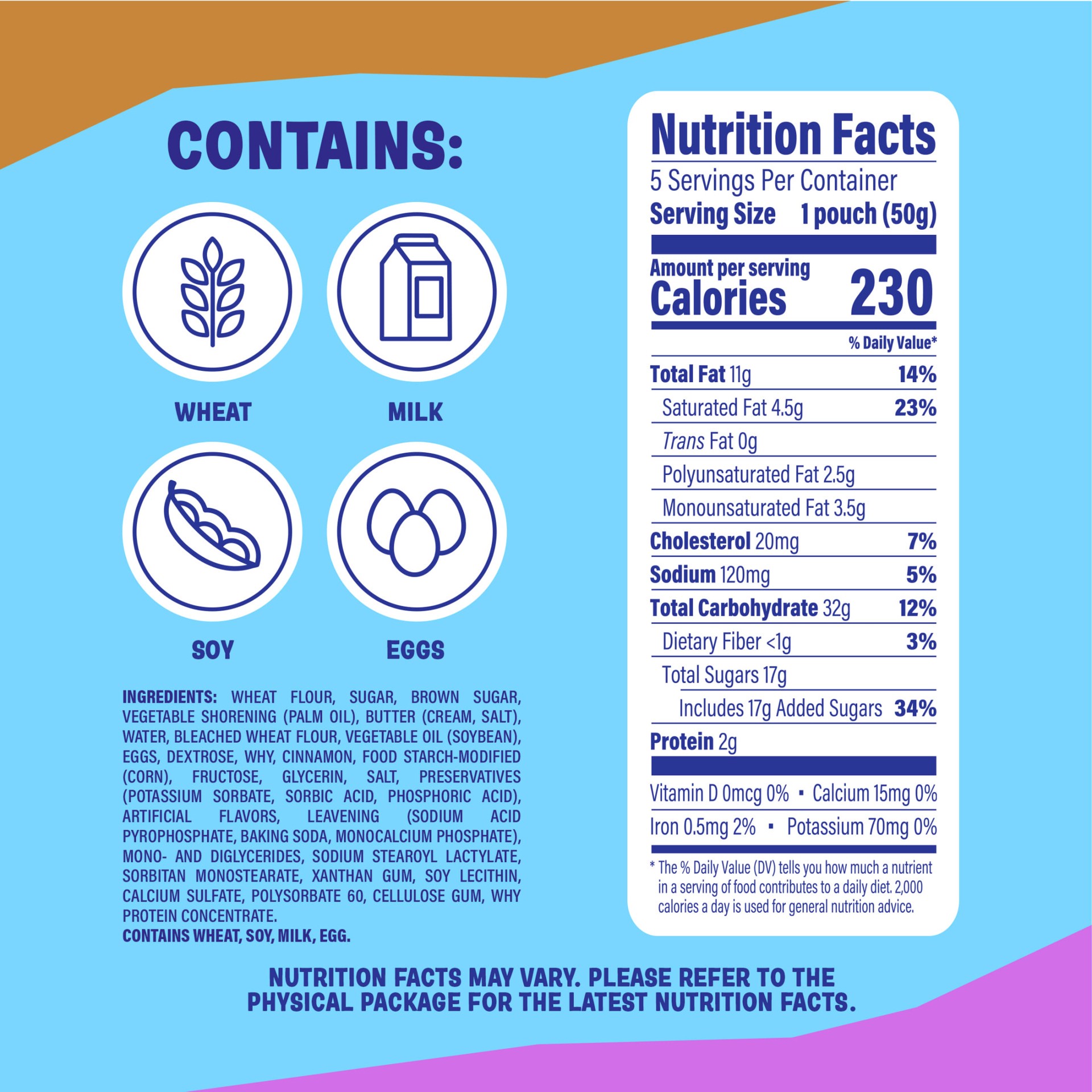 Wheat Flour, Sugar, Brown Sugar, Vegetable Shortening (Palm Oil), Butter [Cream, Salt], Water, Bleached Wheat Flour, Vegetable Oil (Soybean), Eggs, Dextrose, Whey, Cinnamon, Food Starch-Modified (Corn…