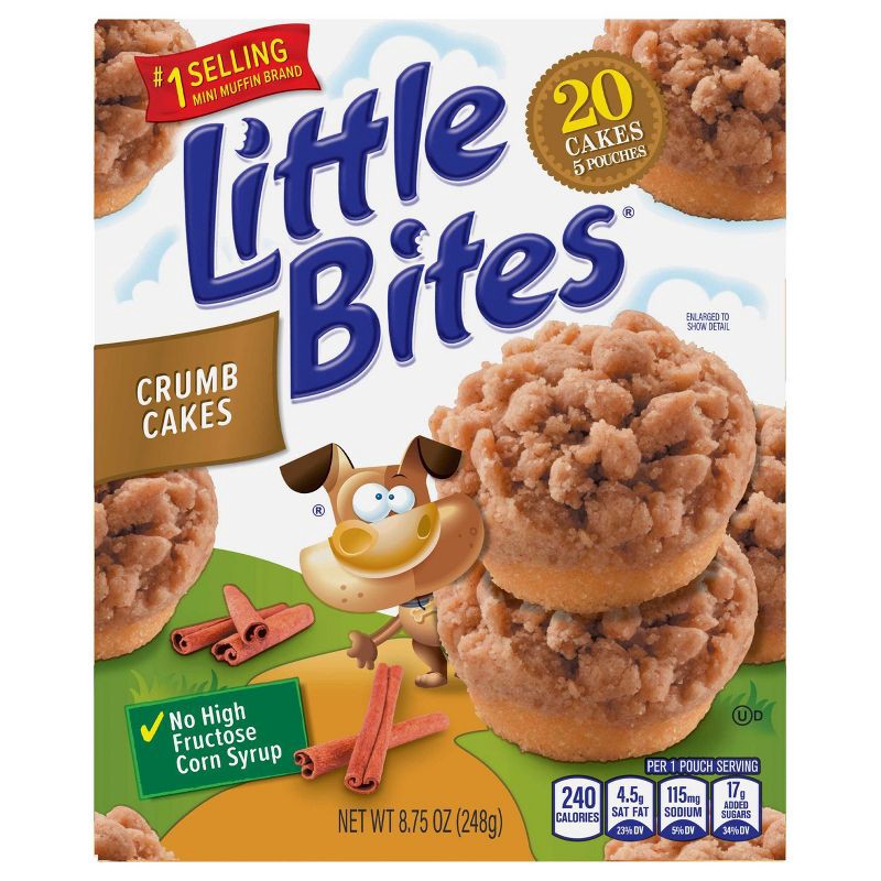 - Enjoy the sweet taste of Entenmann's Little Bites Crumb Cake Mini Muffins; a delightful treat for both kids and adults