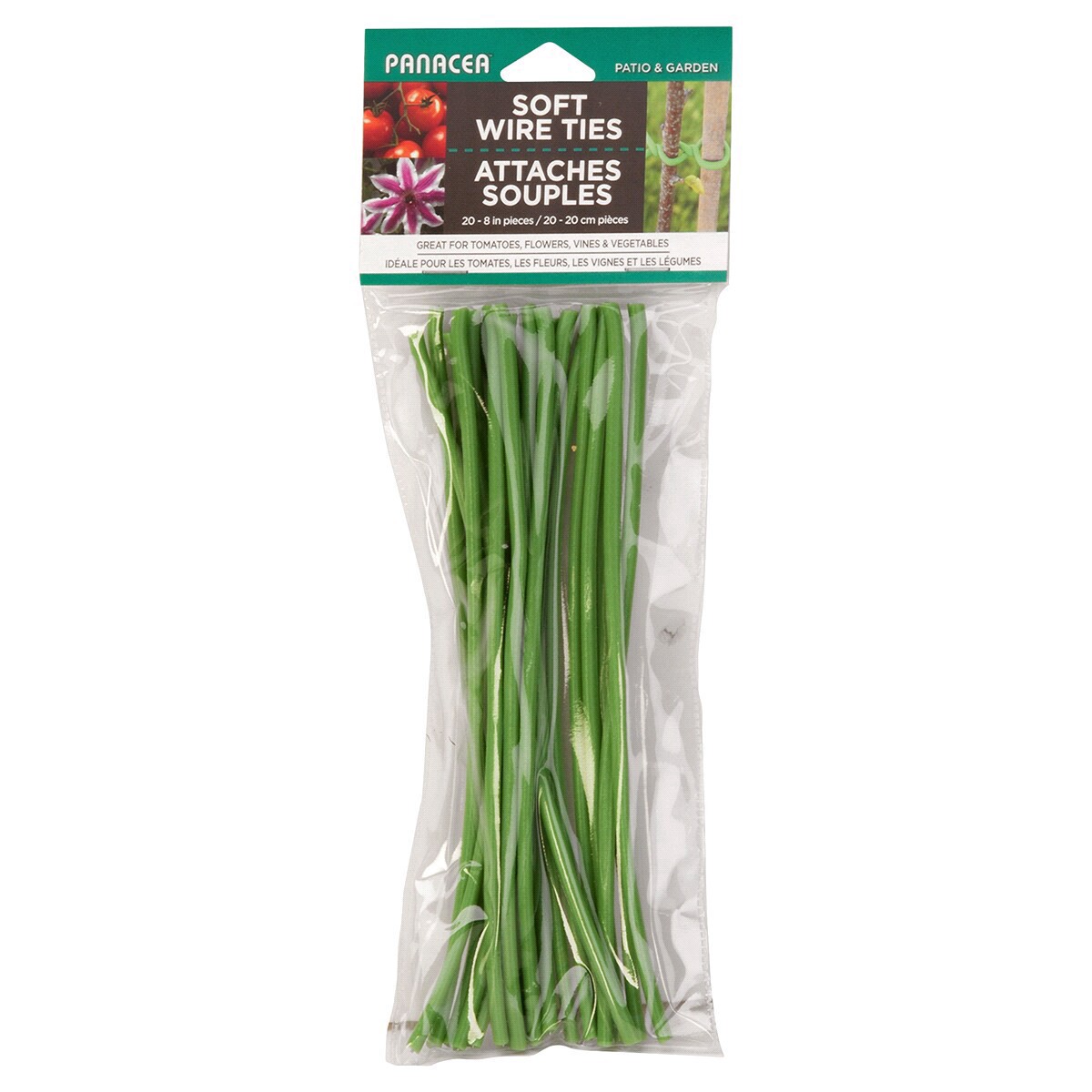 These soft, garden green colored, PE coated wire ties are a gentle way to support delicate vine plants. Precut into 8 inches long for convenience. 20 pieces per package. 5mm PE coating over 1mm wire.
