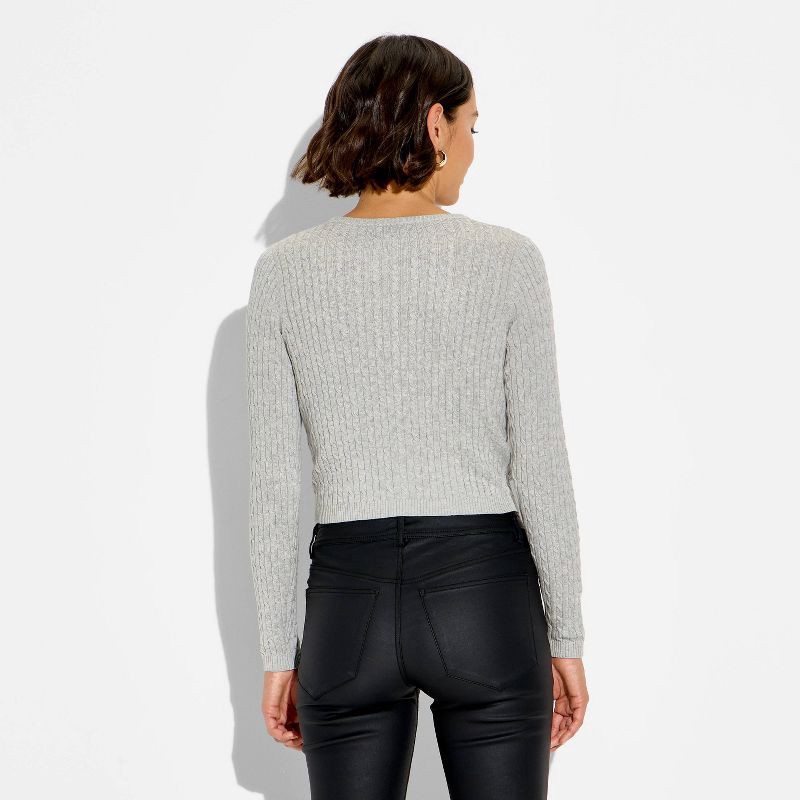 Women's Crewneck Baby Cable Cardigan - Wild Fable™ Gray M