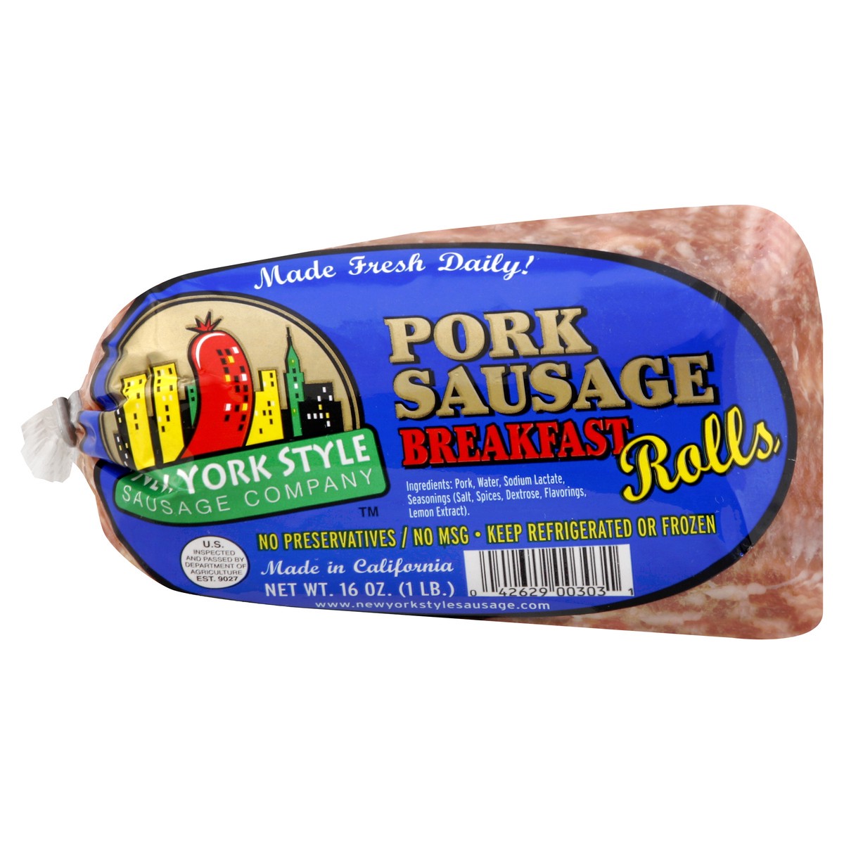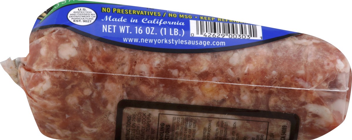 Made fresh daily! No preservatives. No MSG. US inspected and passed by Department of Agriculture. www.newyorkstylesausage.com. Made in California. Product of USA.