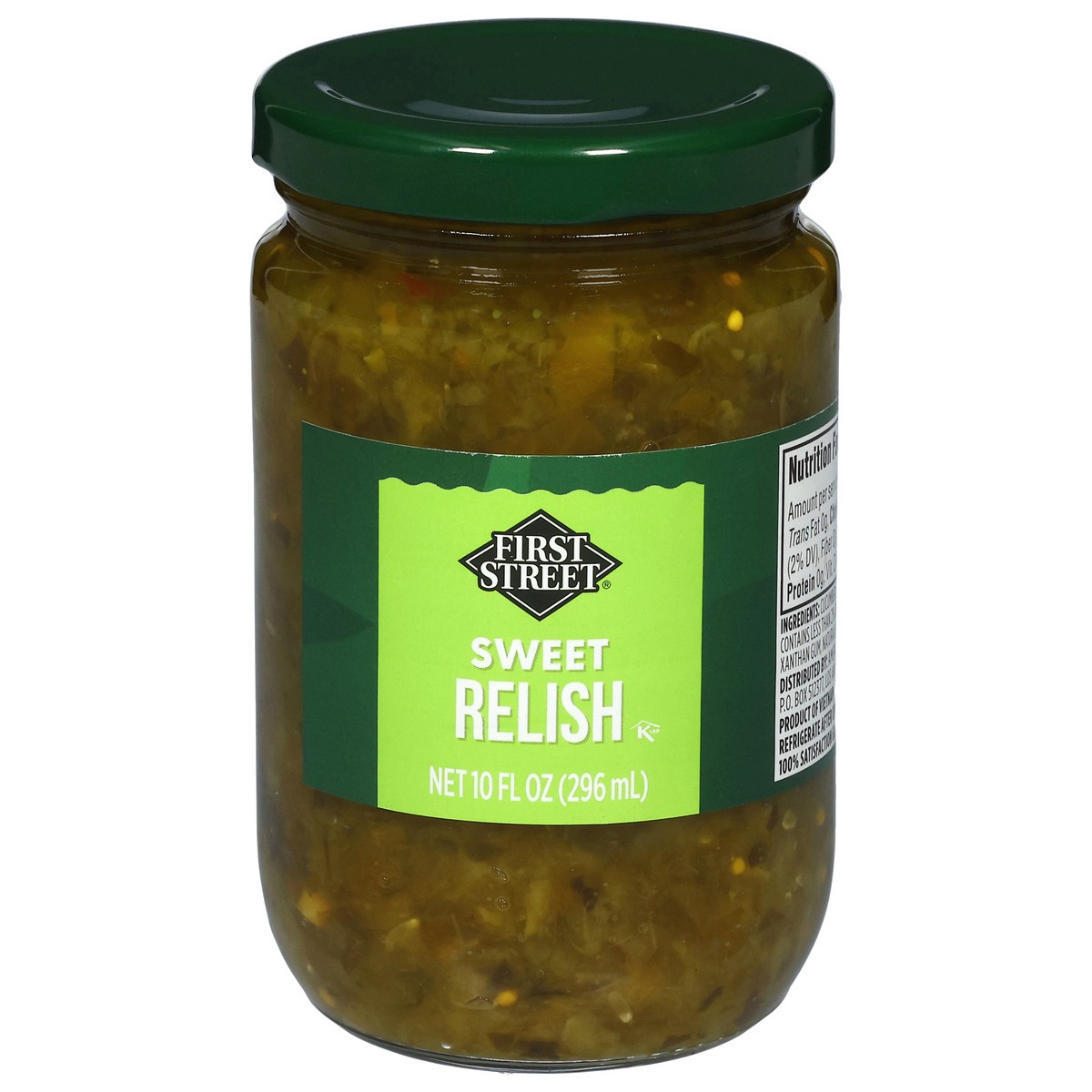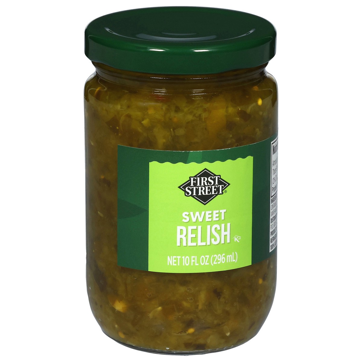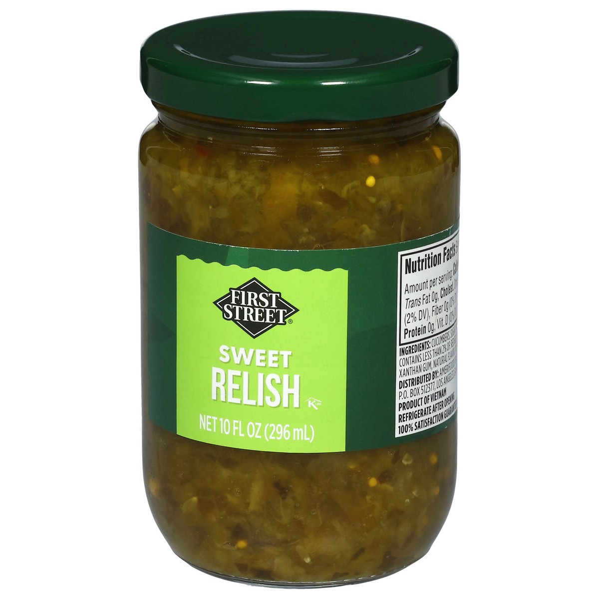 Cucumbers, Sugar, Water, Vinegar, Salt, Contains Less than 2% of: Red Bell Pepper, Mustard Seeds, Xanthan Gum, Natural Flavor, Polysorbate 80, Yellow 5.