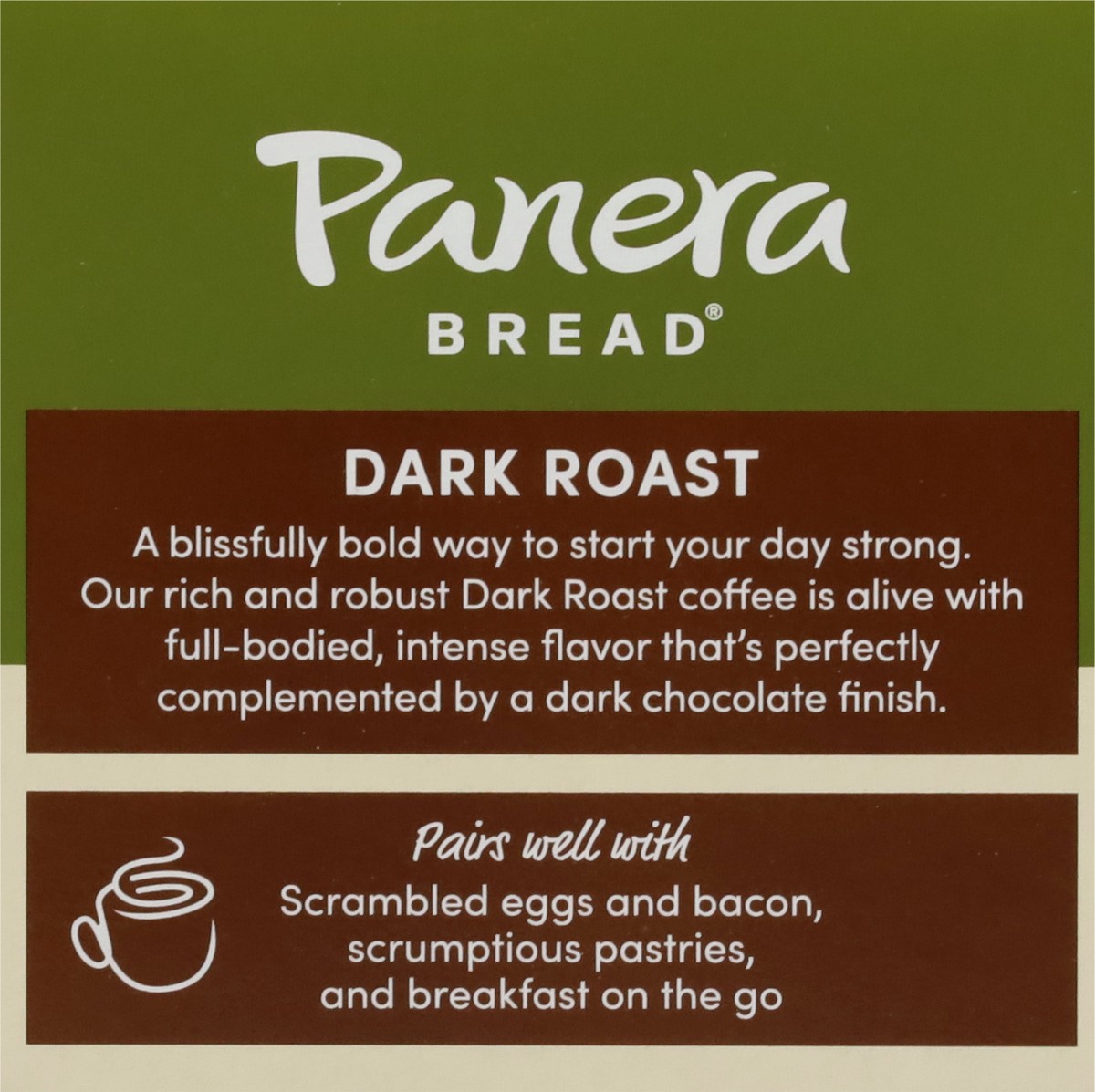 Theres nothing shy about our Panera Dark Roast. Made from 100 Arabica beans, its a blissfully bold way to start your day strong. This darkroasted coffee demands attention with a fullbodied, intense fl…