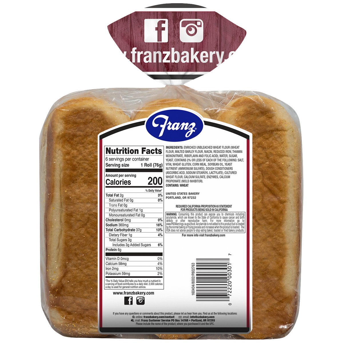 Made with premium northwest grown & milled ingredients. Since 1906 Family Owned. Franz Customer Service PO Box 14769. No high fructose corn syrup. www.franzbakery.com. Facebook. Instagram. www.franzba…