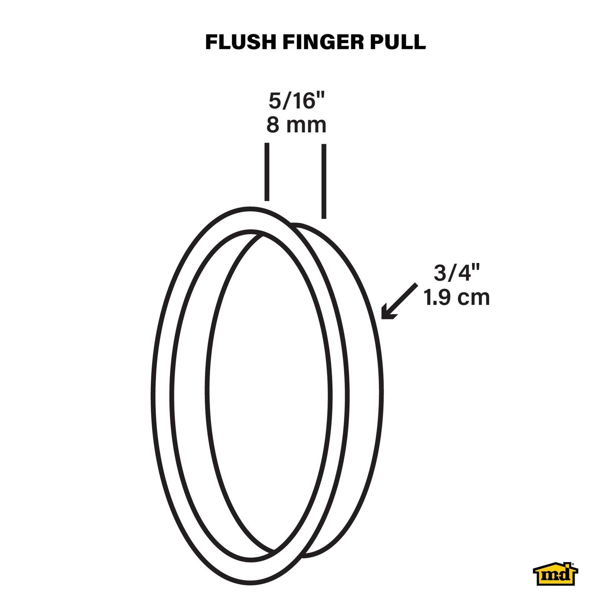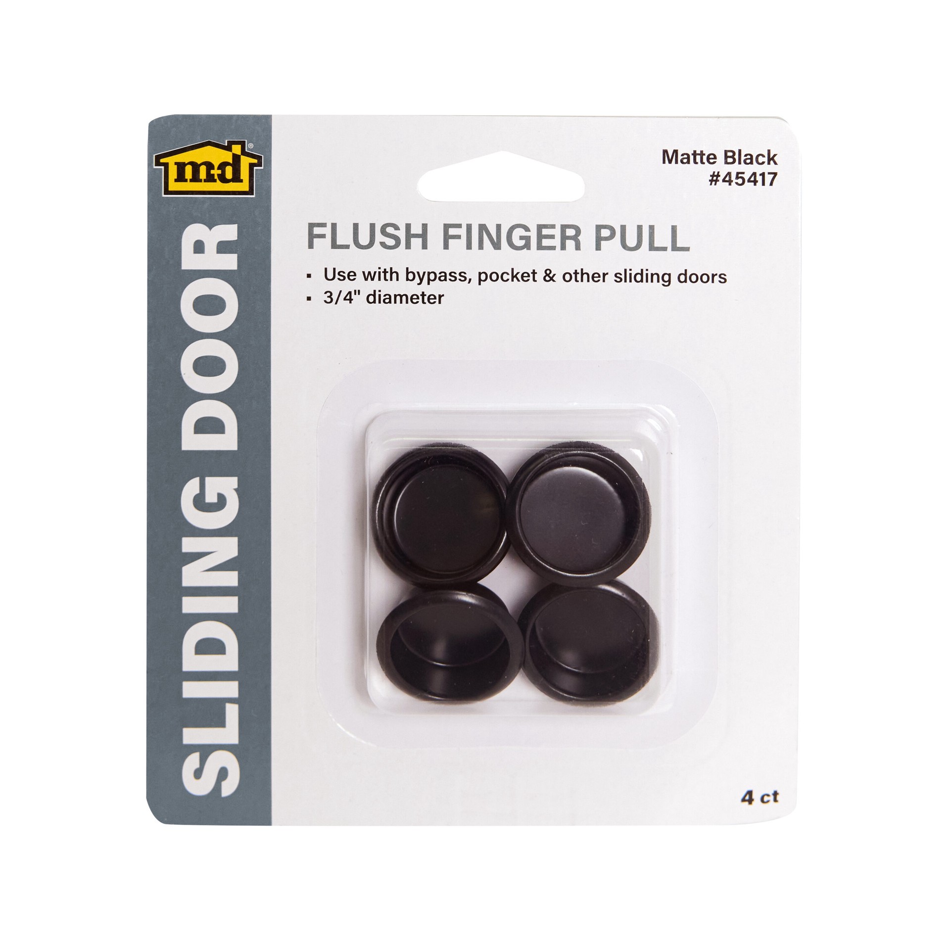 Use these finger pulls on any sliding door application. Steel plated for long lasting durability. Press fit into 3/4" hole. Steel. Matte Black finish. Press fit into 3/4" opening.