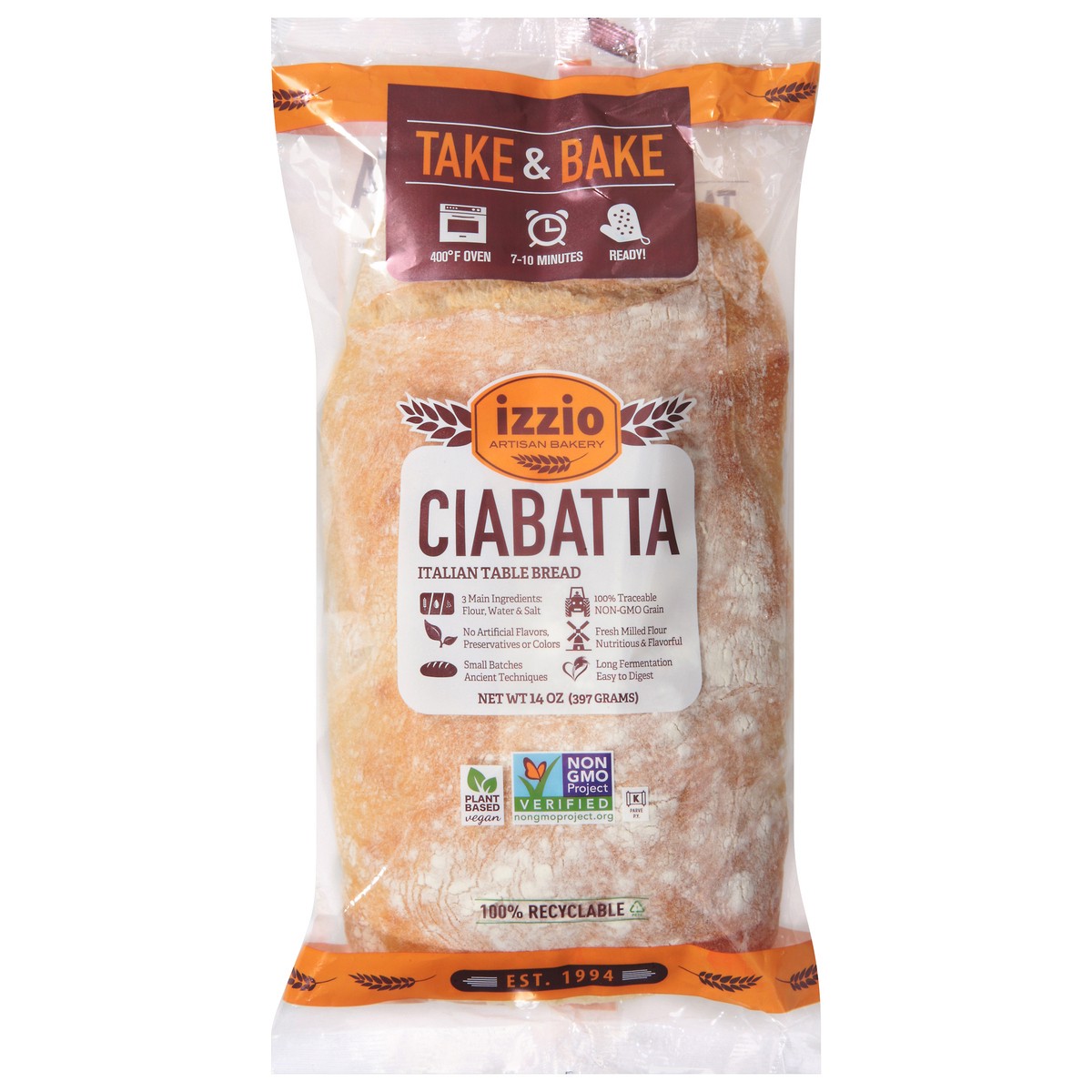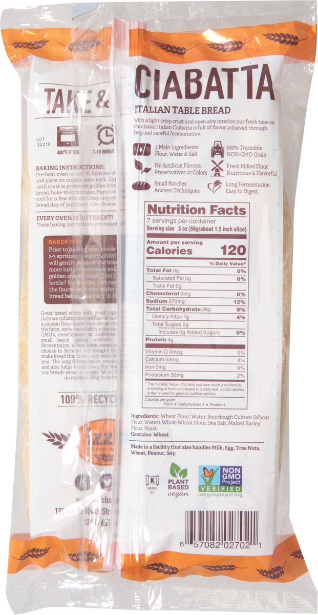 Izzio Artisan Bakery Take & Bake Ciabatta - 14 Oz.