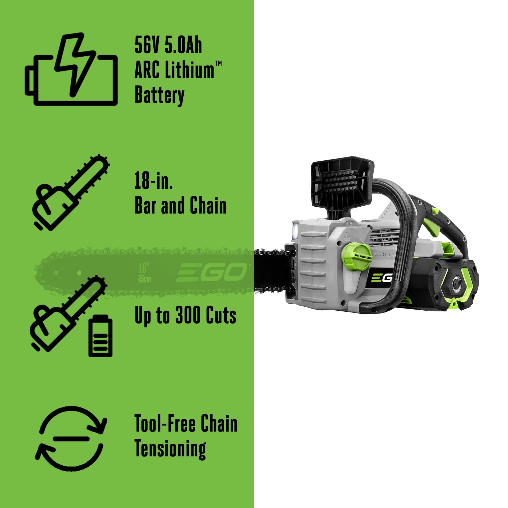 EGO POWER+ 56-volt 18-in Battery 5 Ah Chainsaw Battery Included Charger Included