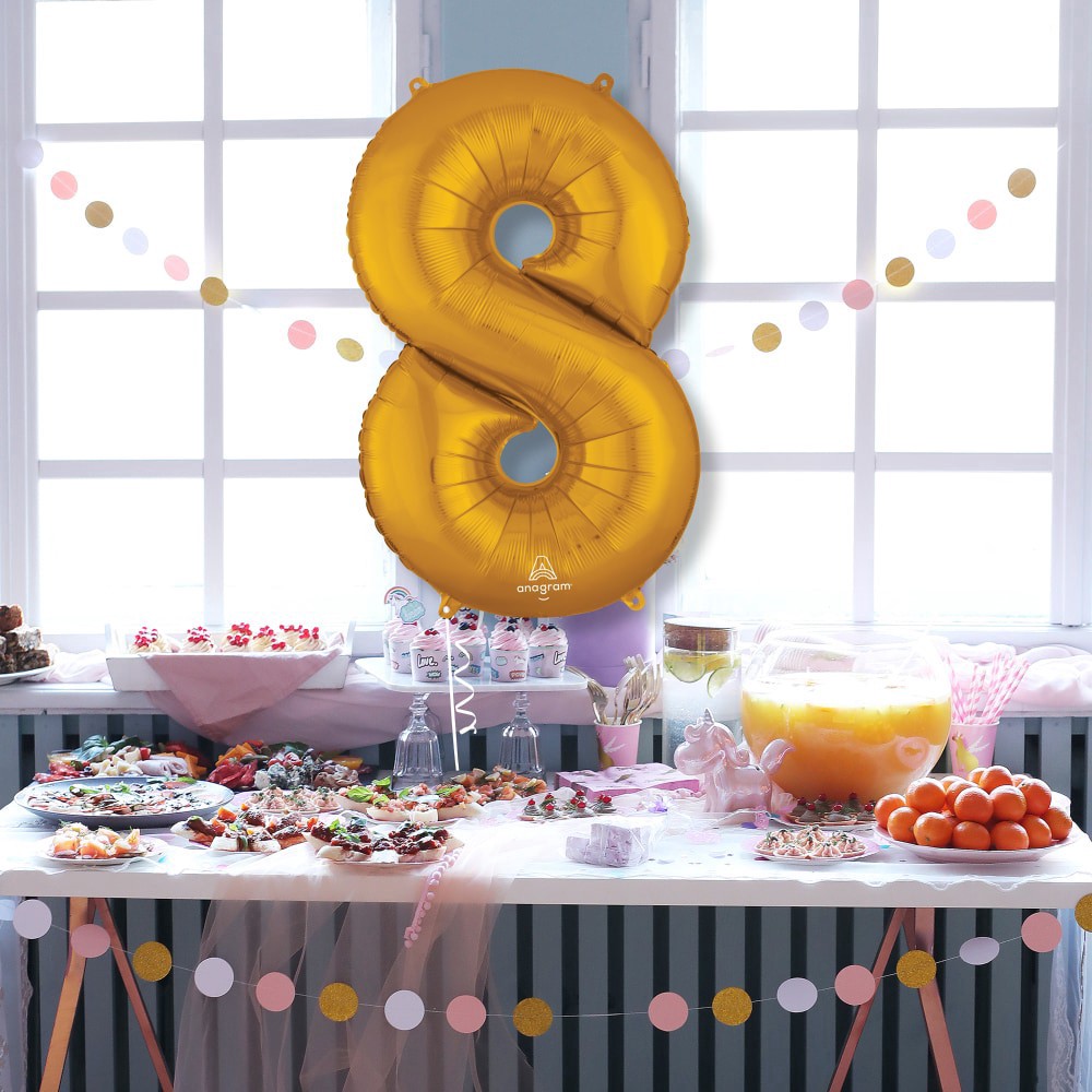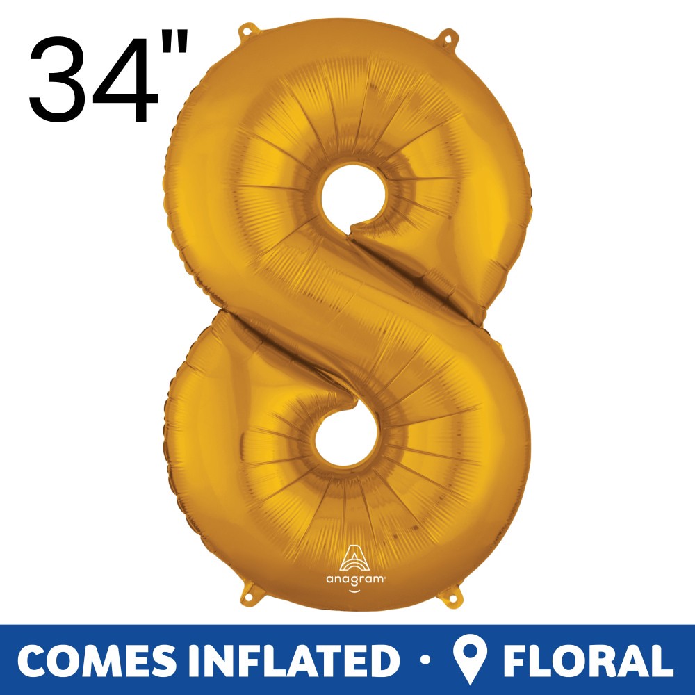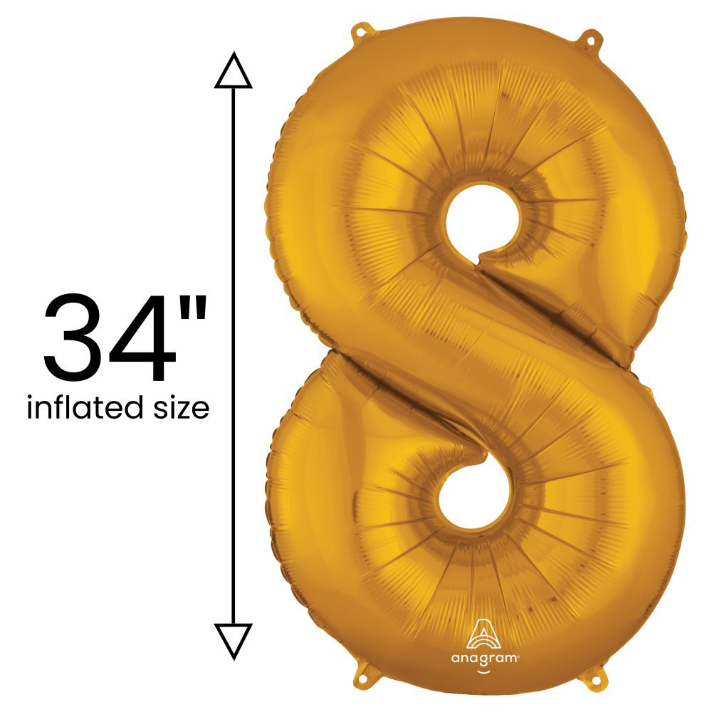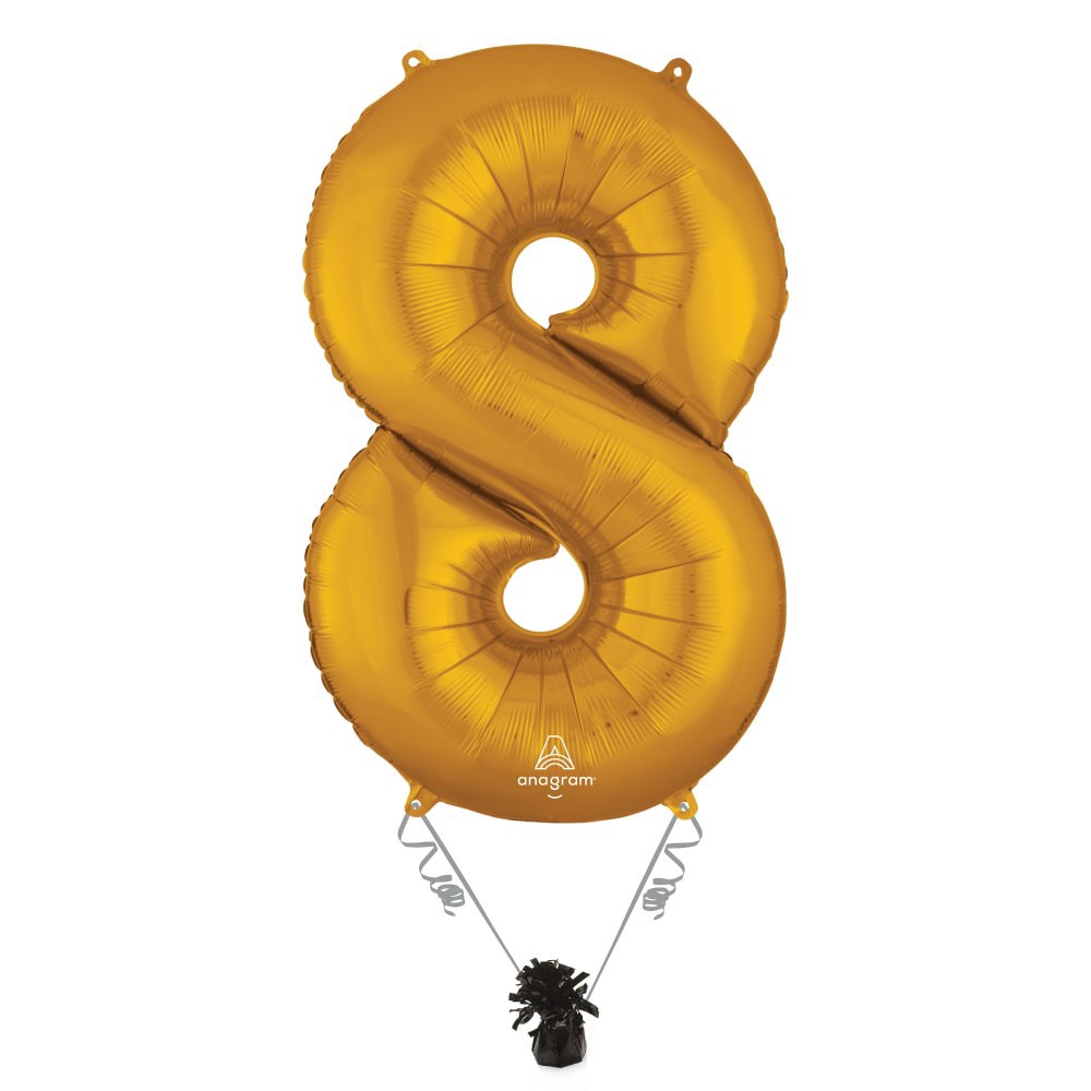 Gold Number 8 Helium Filled Balloon - 34 Inches Big