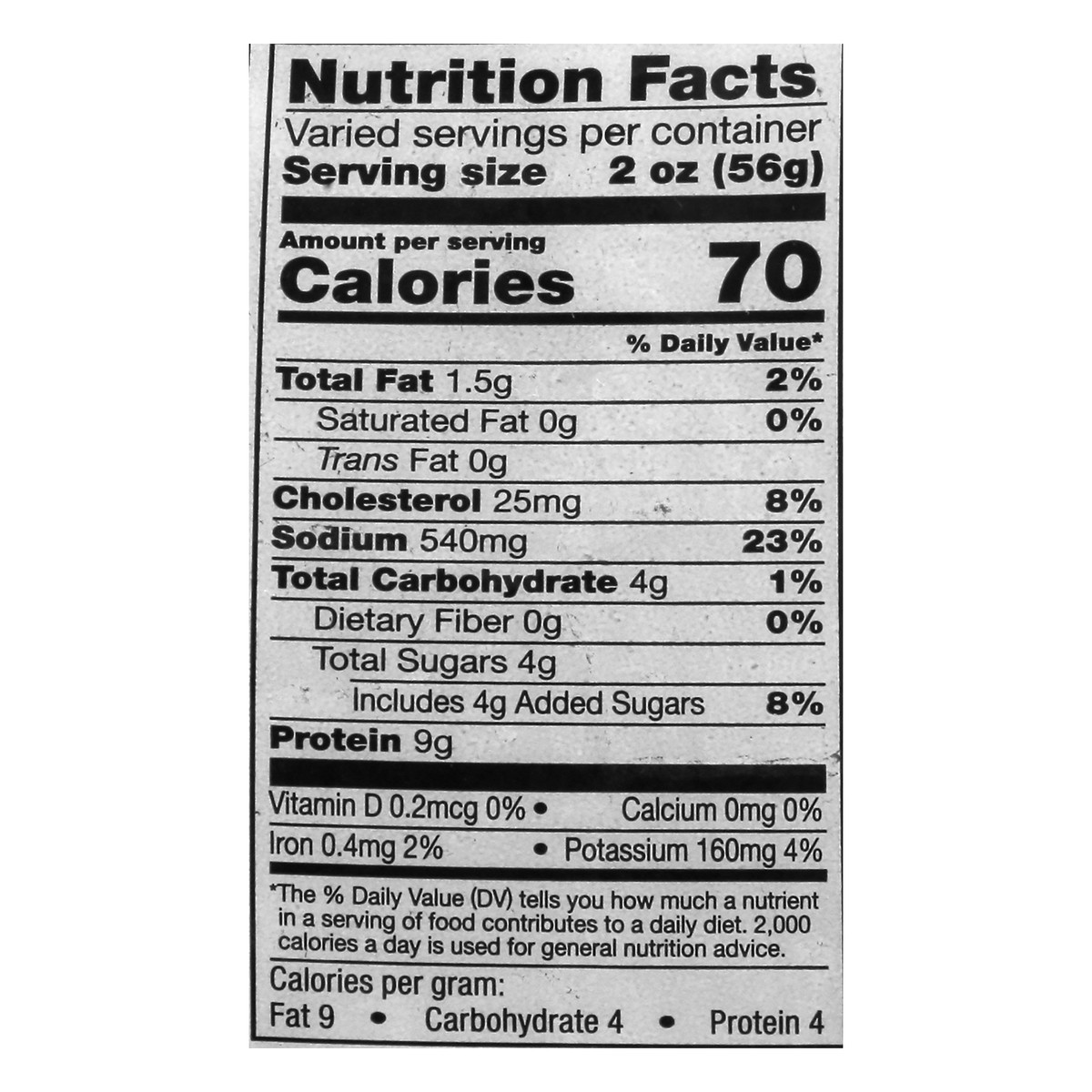 Cured with: Water, Honey, Dextrose, Salt, Contains 2% or Less of: Sodium Phosphates, Sodium Erythorbate, Sodium Nitrite.