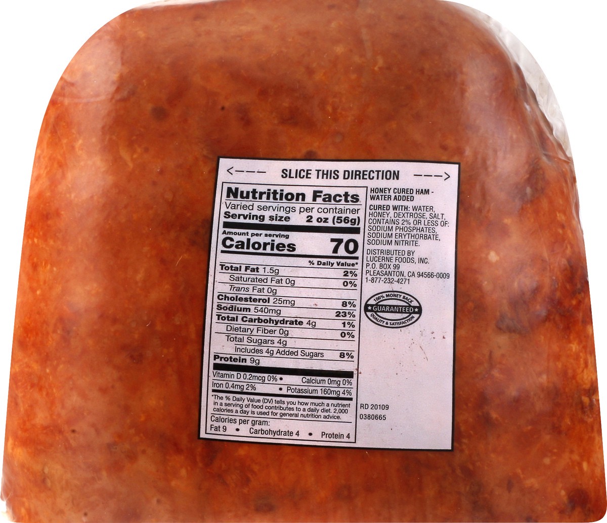 Cured with: Water, Honey, Dextrose, Salt, Contains 2% or Less of: Sodium Phosphates, Sodium Erythorbate, Sodium Nitrite.