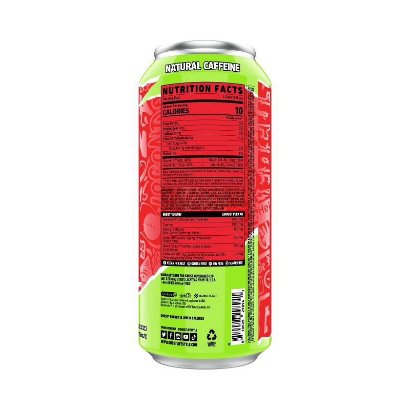 - TOTAL TRANSPARENCY: All Ghost products feature a transparent label that fully discloses the dose of each active ingredient. Zero proprietary blends means you know what you’re getting in each and every sip. Ghost Energy contains zero-sugars and is vegan-friendly and gluten-free.