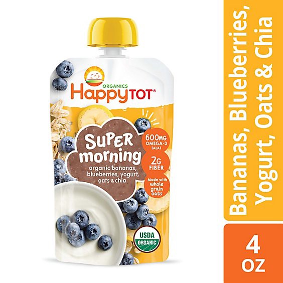 Happy Tot Organics Super Morning Organic Bananas Blueberries Yogurt Oats Chia - 4 Oz