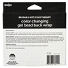 Our hot or cold gel bead back wrap provides relief for sore muscles. Its reusable and has color changing beads that turn white when hot and purple when cold. One size fits most.