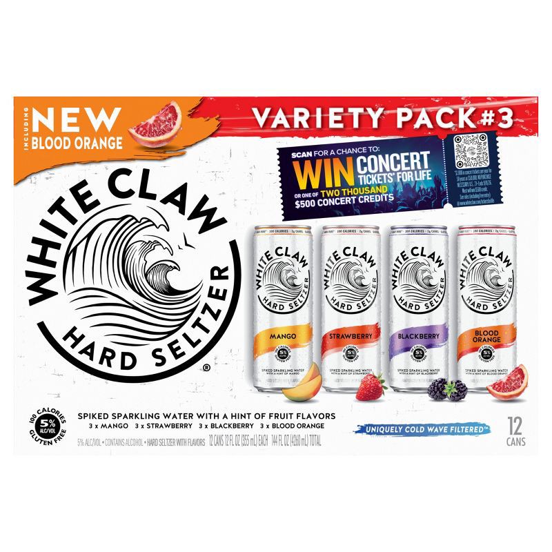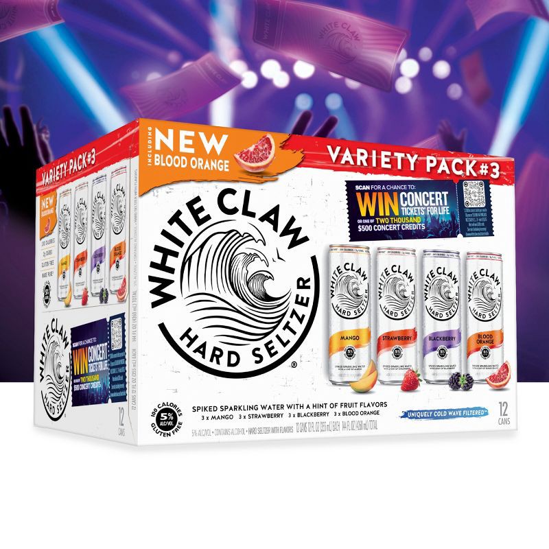 Enter for your chance to win concert tickets for life* when you pick up White Claw® Hard Seltzer Variety Pack #3. Inside, you'll find four bold fruit flavors, featuring new Blood Orange, Mango, Strawb…