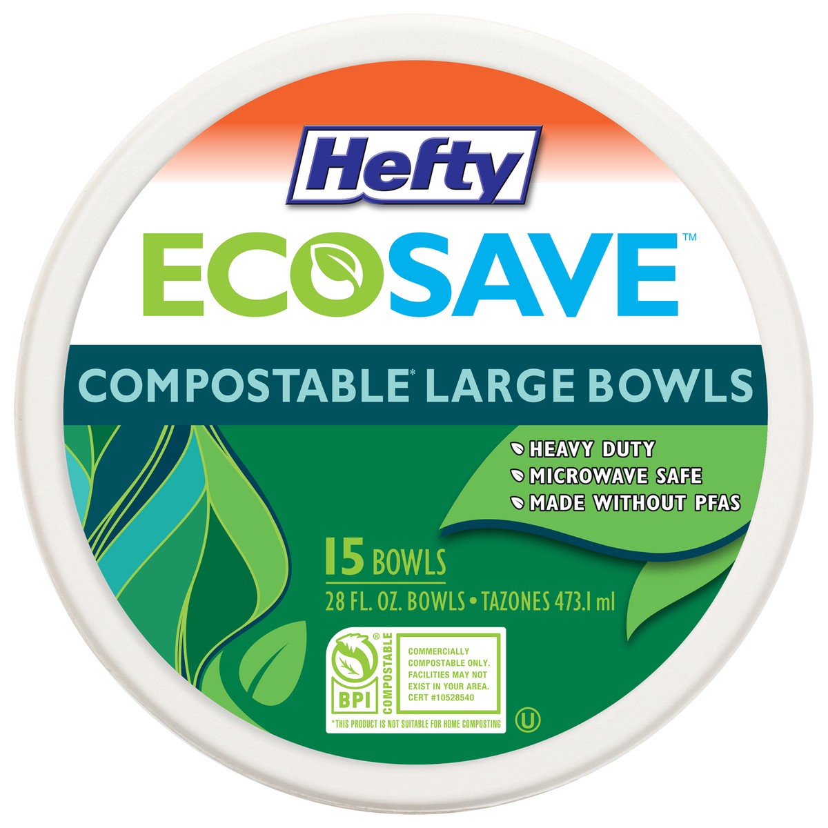 With Hefty ECOSAVE compostable bowls, you won’t have to choose between easy cleanup and sustainability. Made from a durable and microwave-safe plant-based material, these disposable plates are commerc…