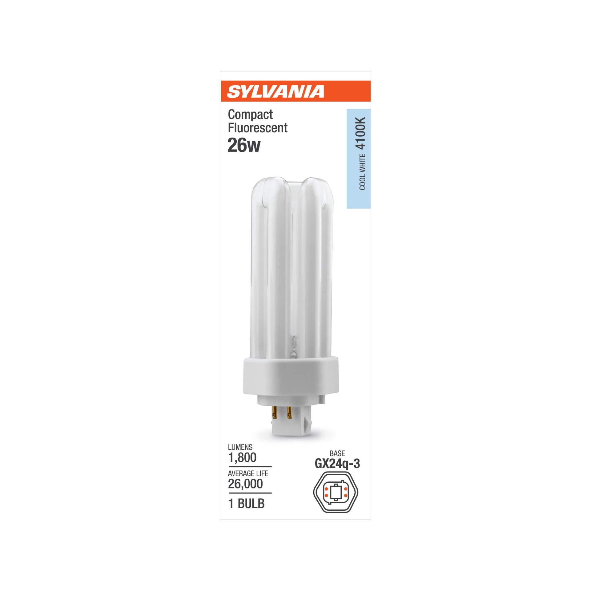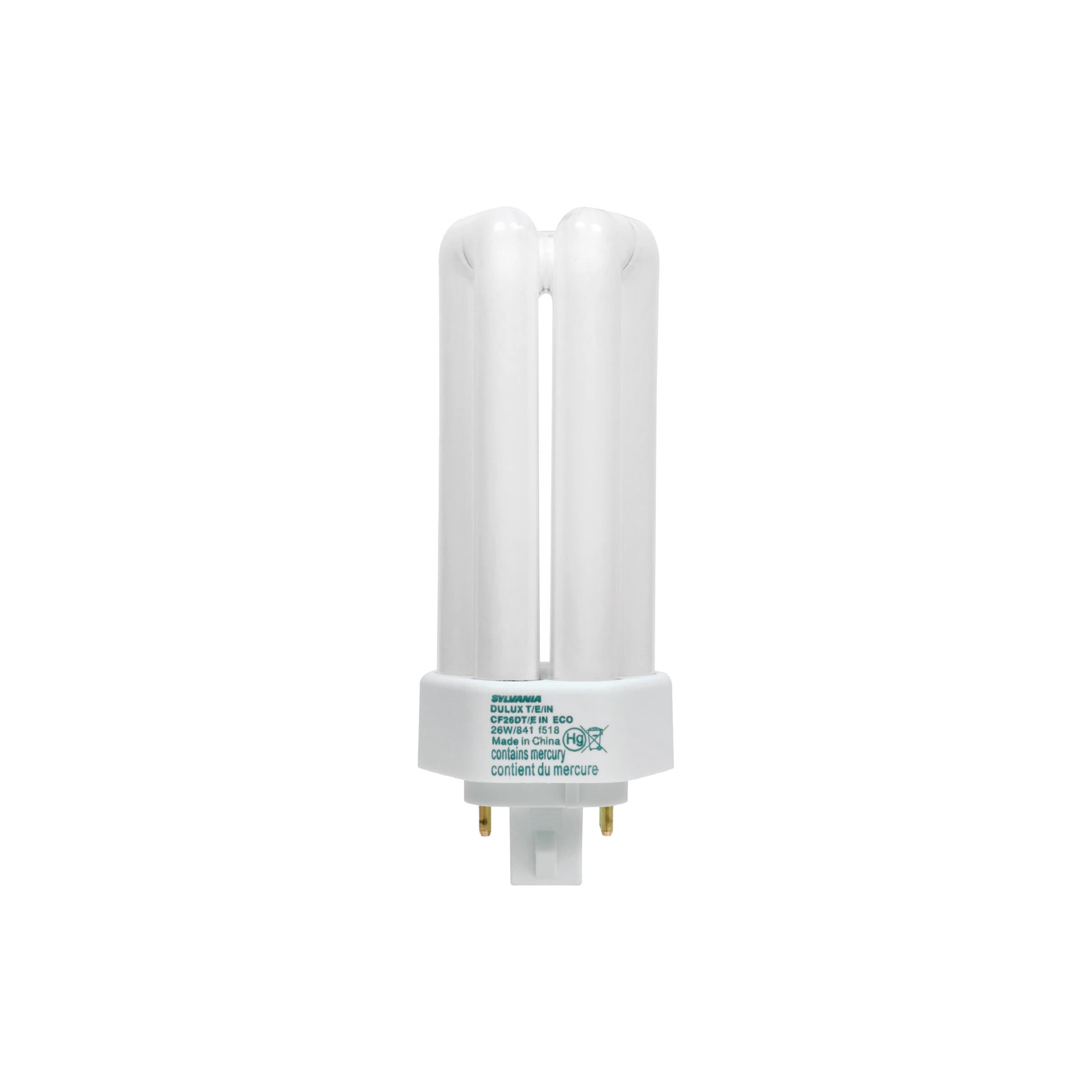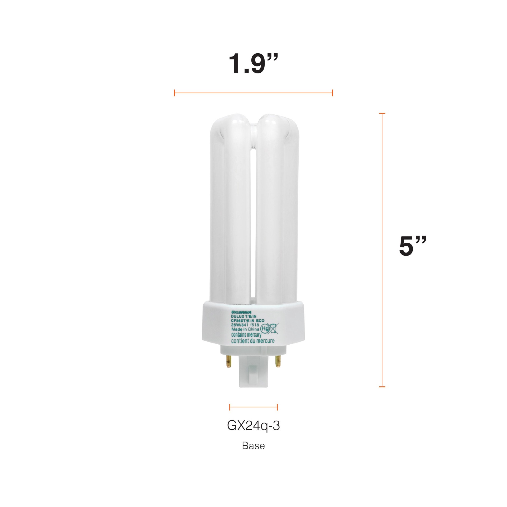 Triple tube compact fluorescent lamp with GX24q-3 pin base. T4 bulb shape with a compact 5" tube length. Uses only 26 Watts for energy-efficient performance. Rated to last up to 26,000 hours. 4100K Co…
