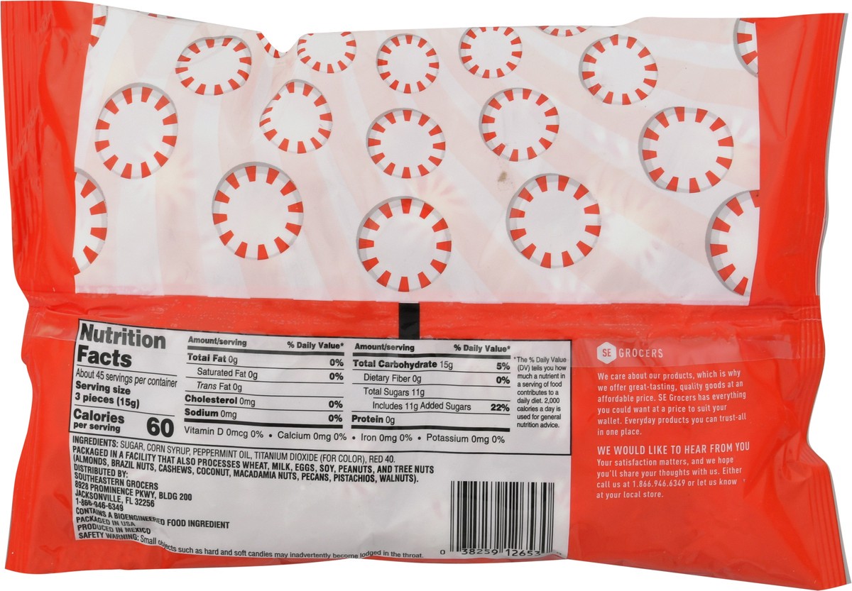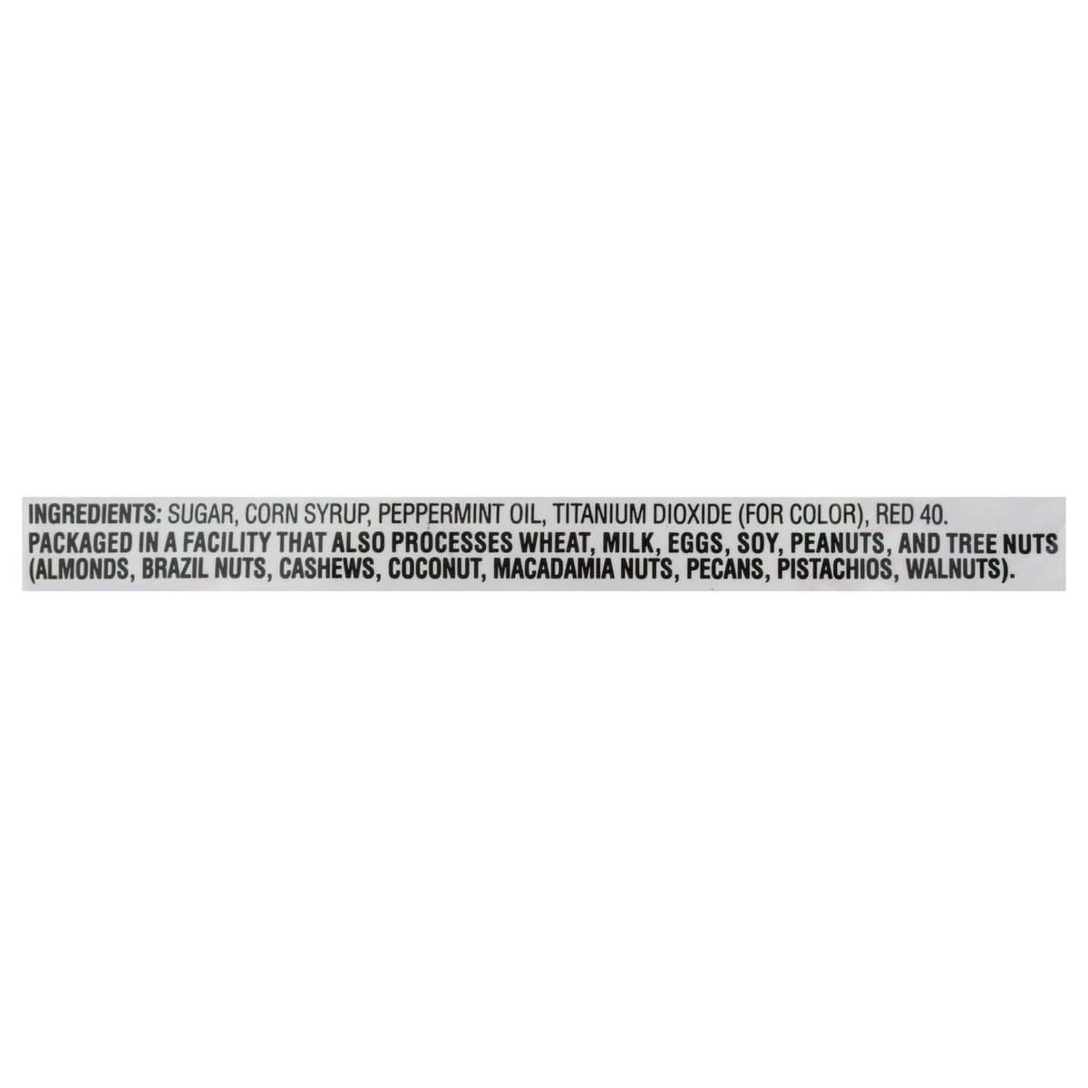 Sugar, Corn Syrup, Peppermint Oil, Titanium Dioxide (for Color), Red 40.