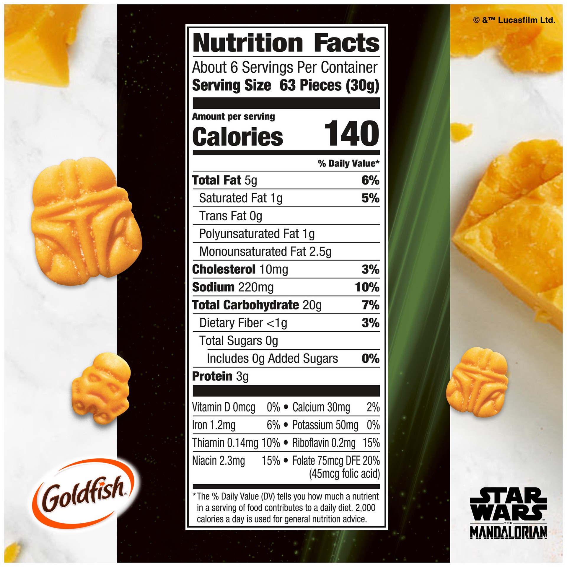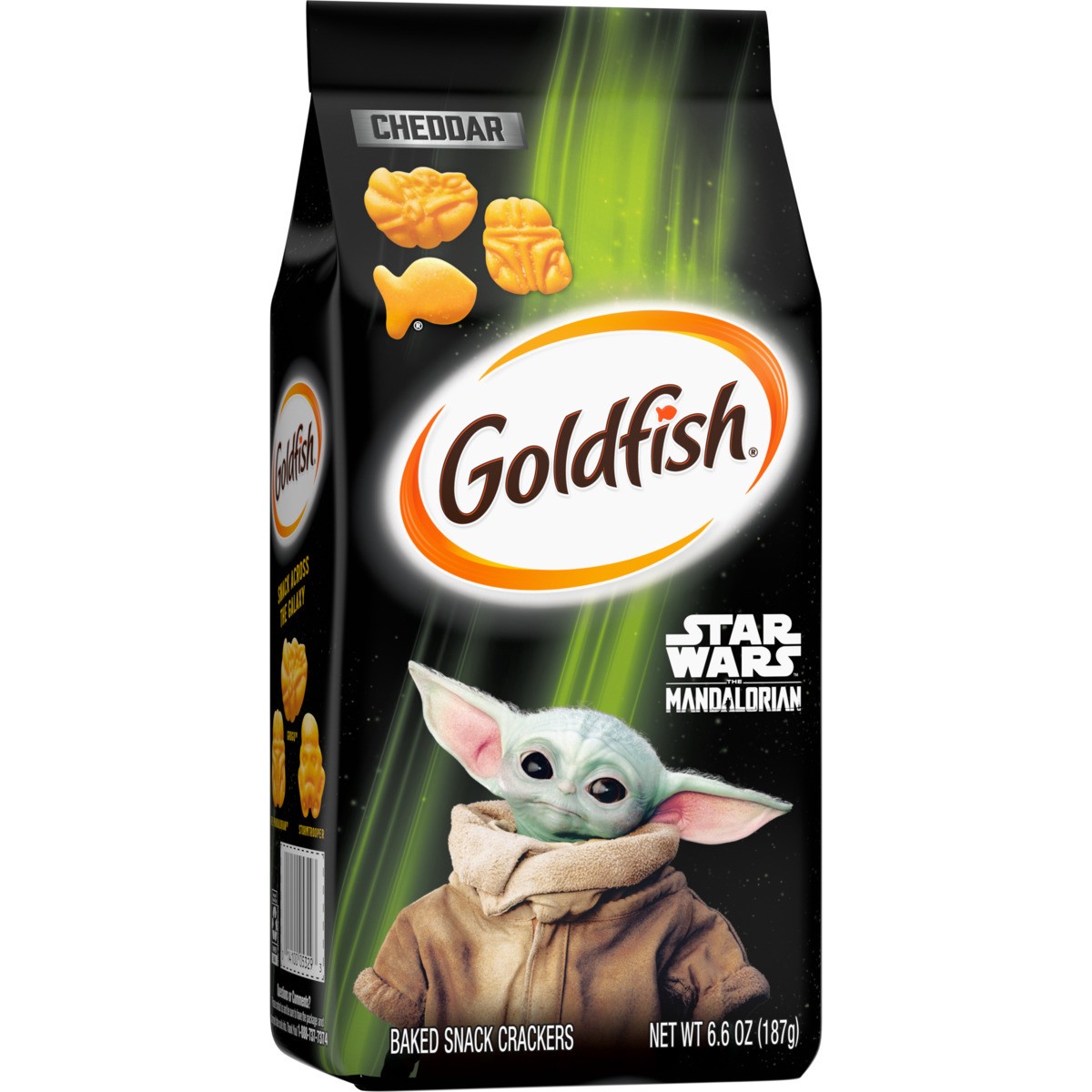 Pepperidge Farm Goldfish snack crackers featuring Star Wars The Mandalorian are an out of this world snack for all your snacking adventures! They''re always baked with 100% real cheese and are made wi…