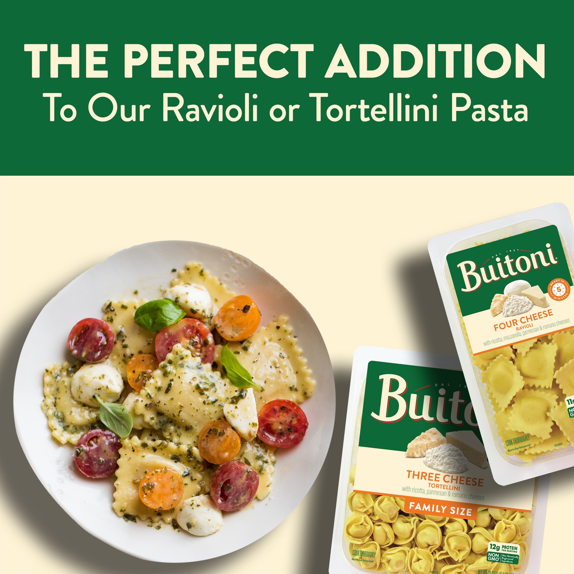 Serve up delicious meals in minutes with Buitoni Basil Pesto. This pesto sauce blends fragrant basil, savory garlic, pine nuts, walnuts, aged Parmesan and Romano cheeses and a drizzle of extra virgin …