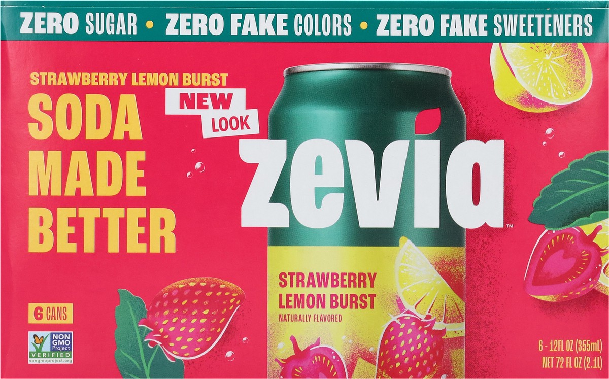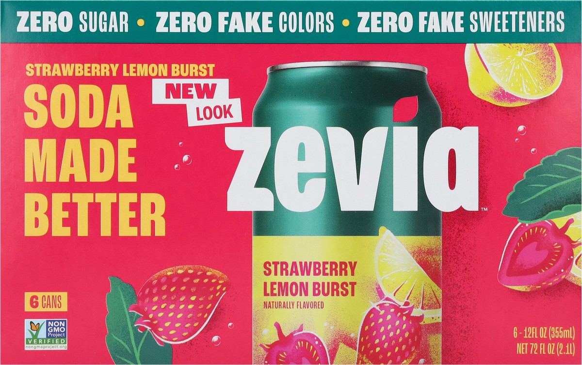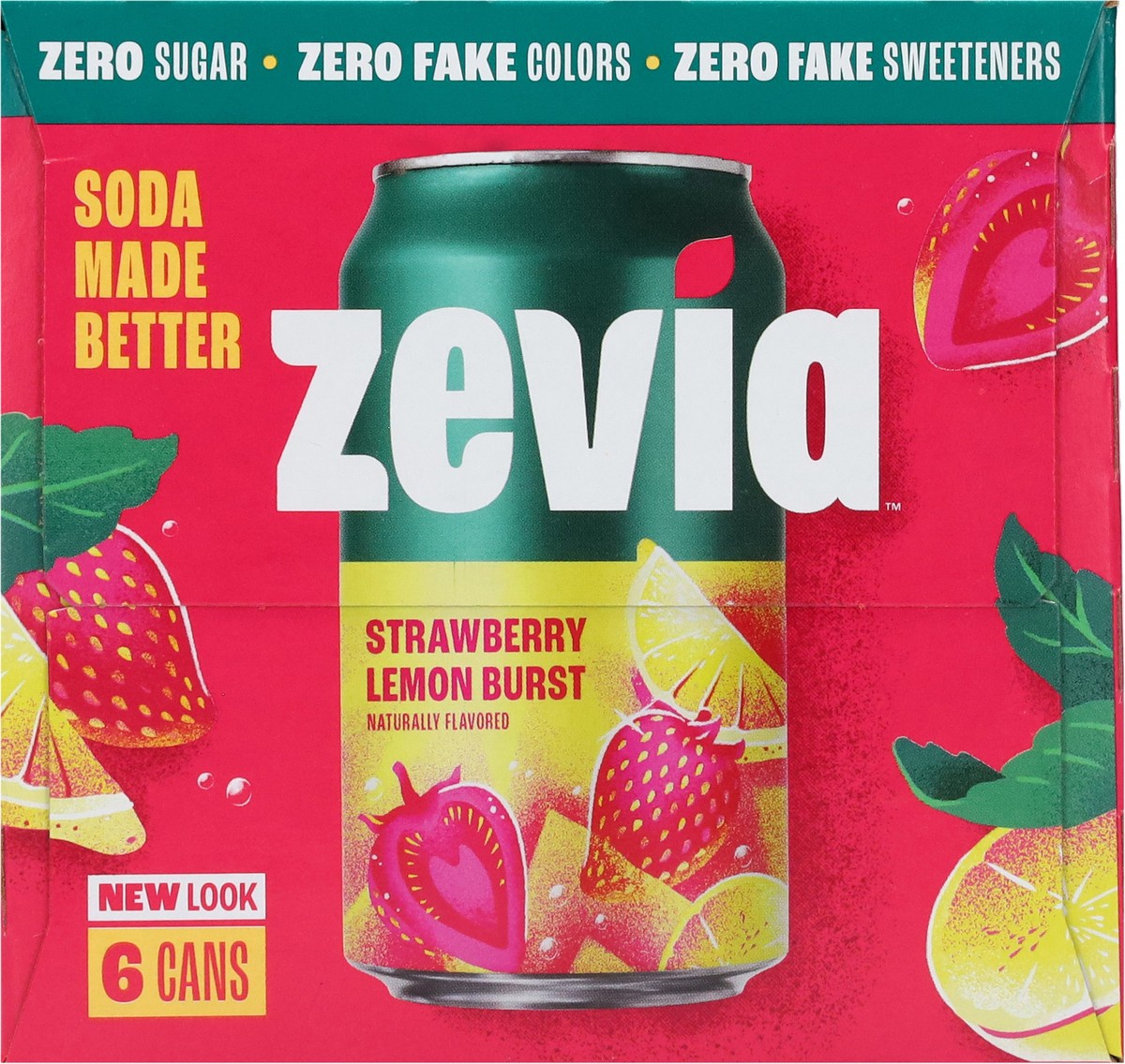 Zevia Zero Sugar Strawberry Lemon Burst Soda 6 - 12 fl oz Cans
