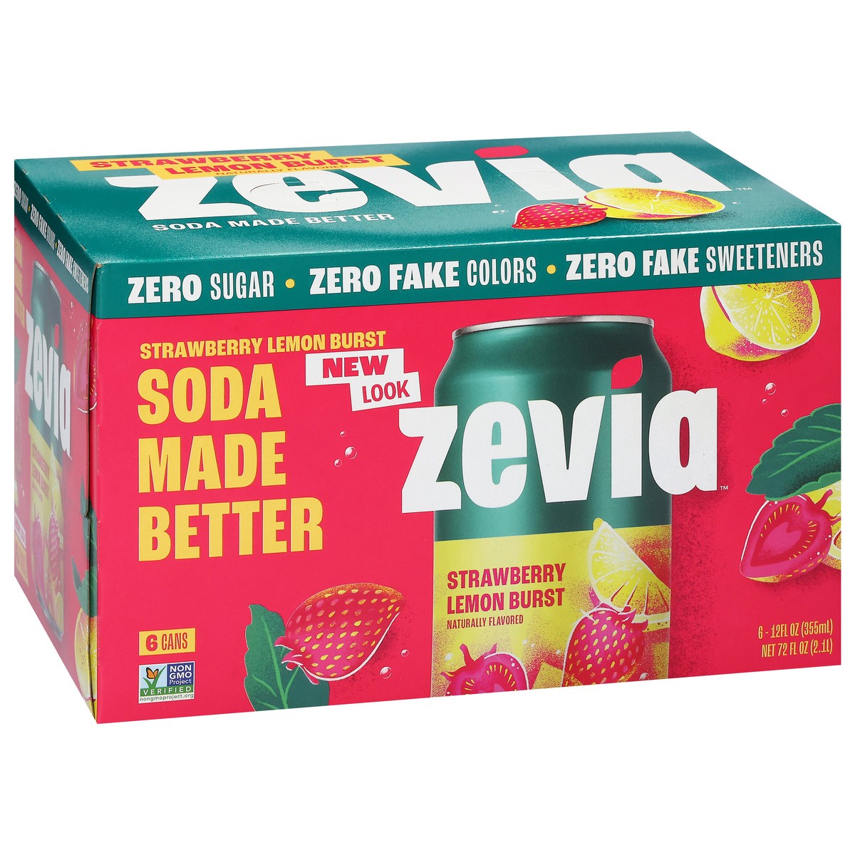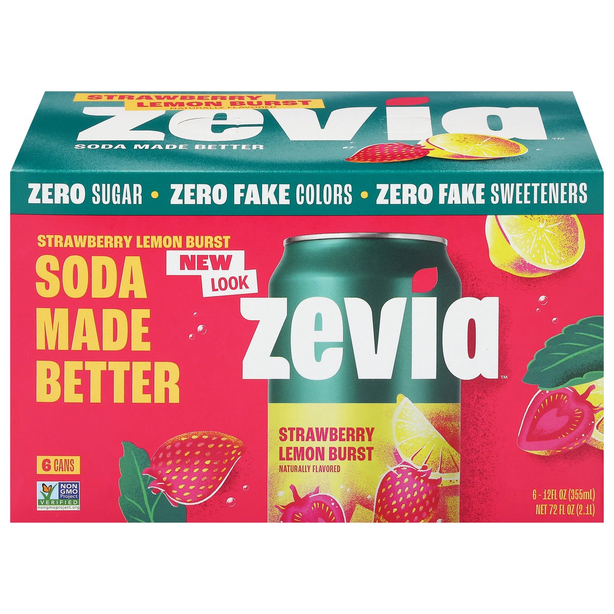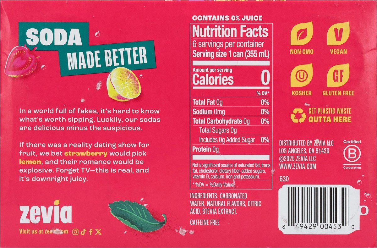 Zevia Zero Sugar Strawberry Lemon Burst Soda 6 - 12 fl oz Cans
