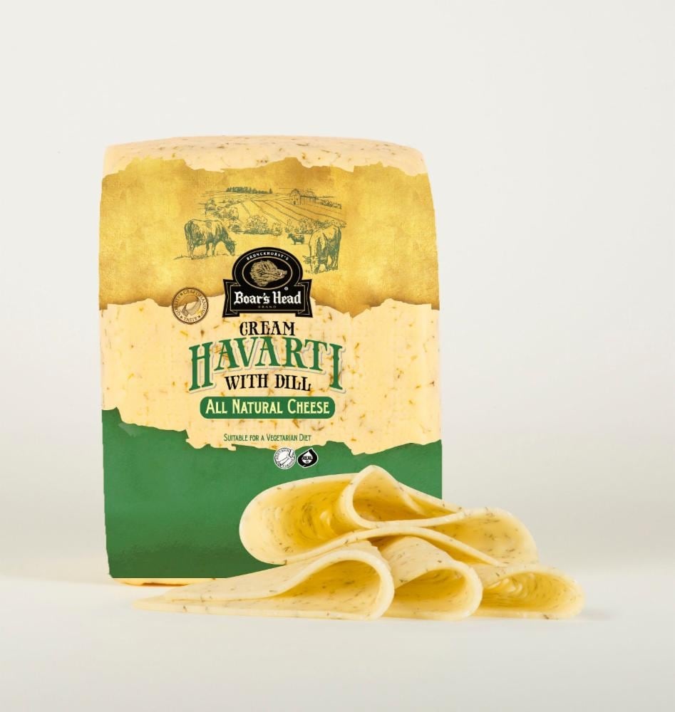 A double crème classic made in the traditional Danish style. Boar's Head® Cream Havarti with Dill is a Wisconsin-made cheese that has an incredibly creamy texture with a rich buttery taste and the del…
