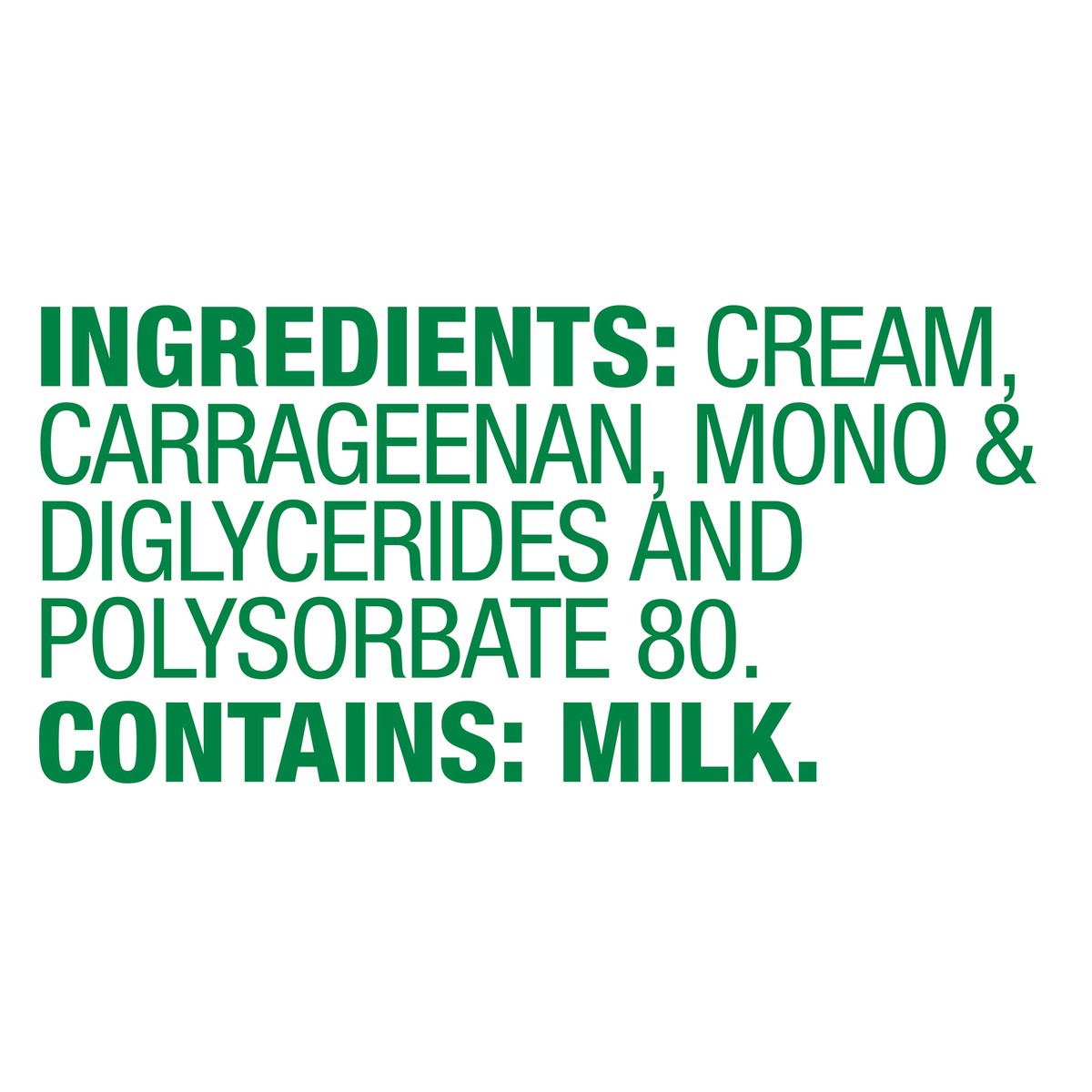 Cream, Carrageenan, Mono & Diglycerides and Polysorbate 80.