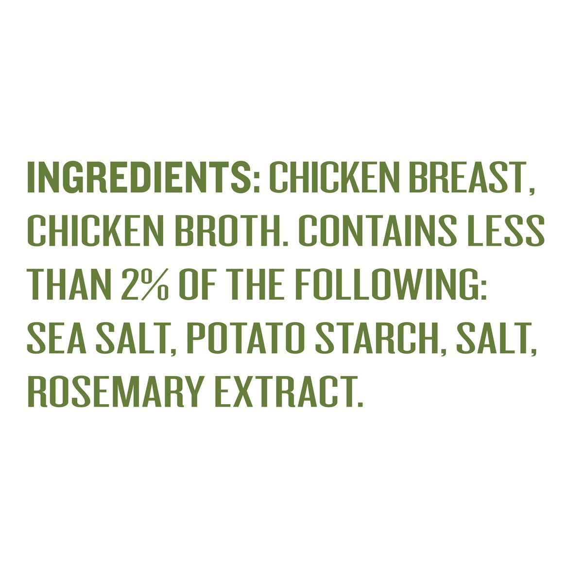 Chicken Breast**, Chicken Broth. Contains Less than 2% of the Following: Sea Salt, Potato Starch, Salt, Rosemary Extract.