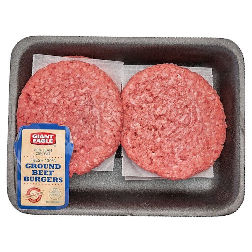 Giant Eagle 80% Lean 20% fat Ground Beef Burger Patties, 80% Lean, comes with 4 Patties. Pick 5