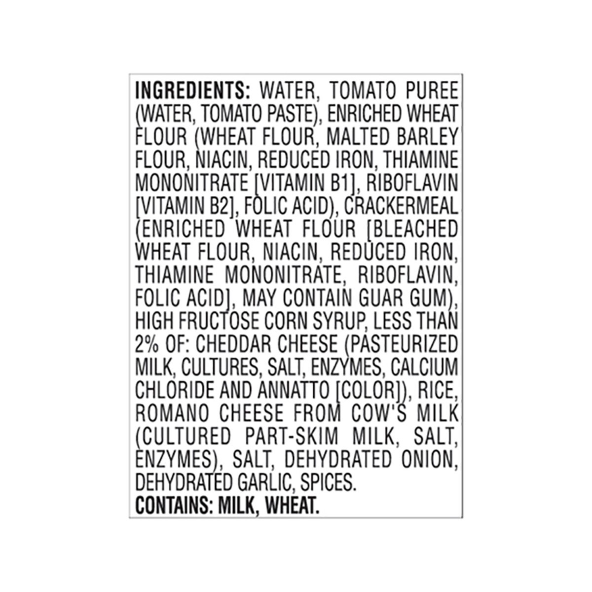 Water, Tomato Puree (Water, Tomato Paste), Enriched Wheat Flour (Wheat Flour, Malted Barley Flour, Niacin, Reduced Iron, Thiamine Mononitrate [Vitamin B1], Riboflavin [Vitamin B2], Folic Acid), Cracke…
