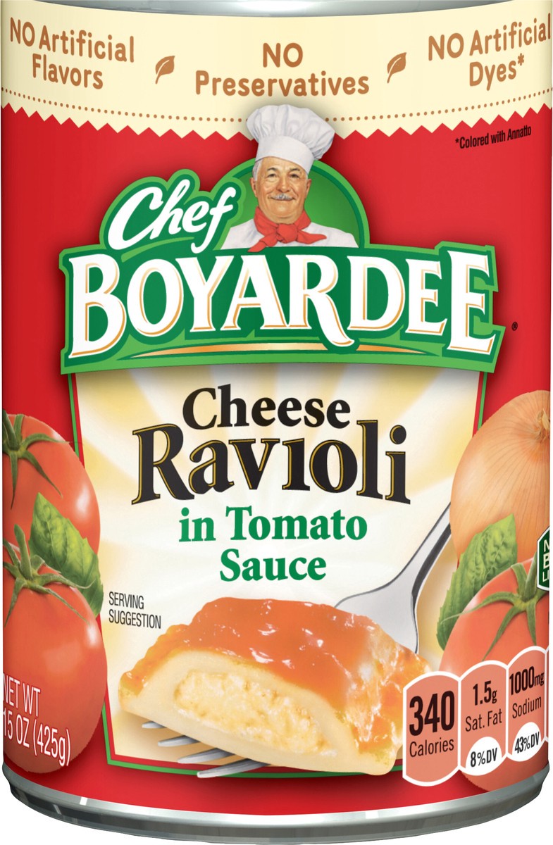 Delicious and convenient, Chef Boyardee Cheese Ravioli in Tomato Sauce has the real ingredients and rich flavor that you'll love. Chef Boyardee uses real cheese, enriched pasta, and a robust tomato sa…