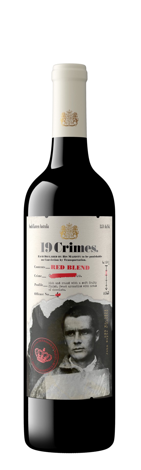 A true crowd-pleaser, 19 Crimes South Australian Red Wine blend is bold and balanced with luscious vanilla aromas and black fruit flavors layered with chocolate and oak spice. 19 Crimes celebrates the…