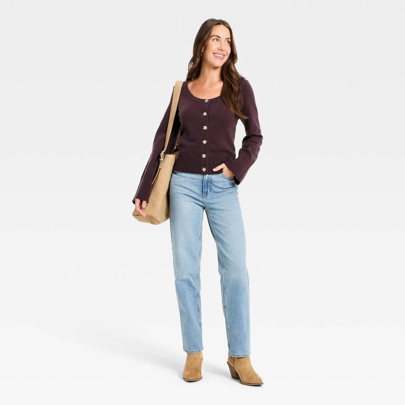 Women's Button-Down Scoop Neck Cardigan Sweater - Universal Thread™ Plum Purple S