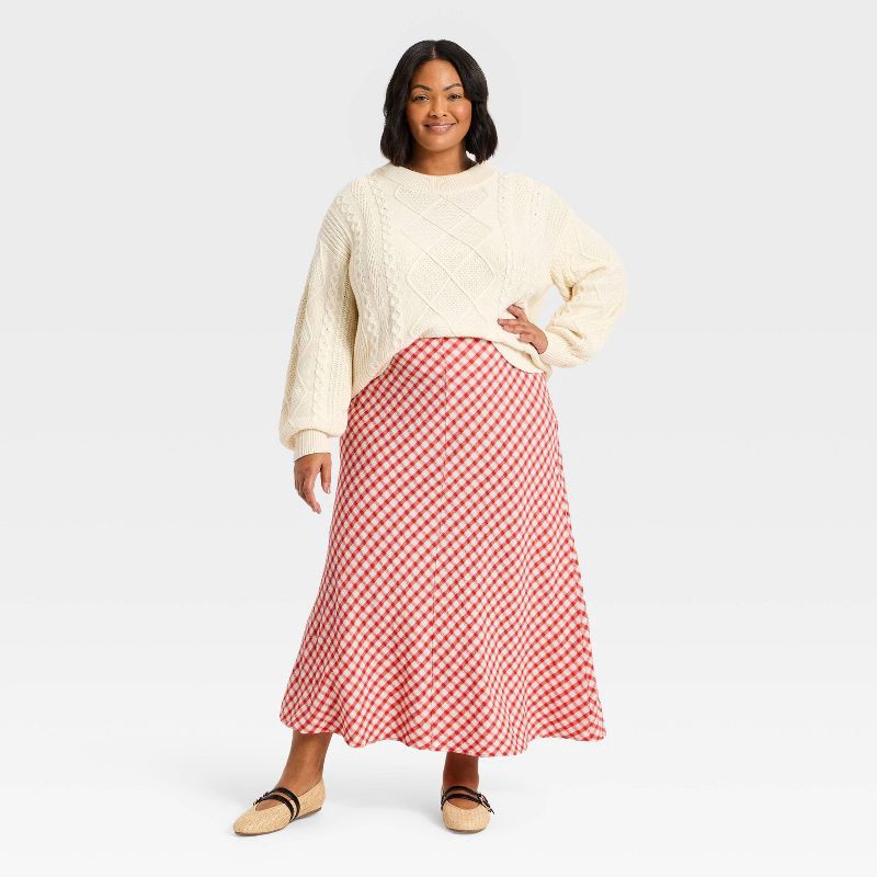 Women's Printed Midi Full Skirt - Universal Thread™ Red Gingham XXL