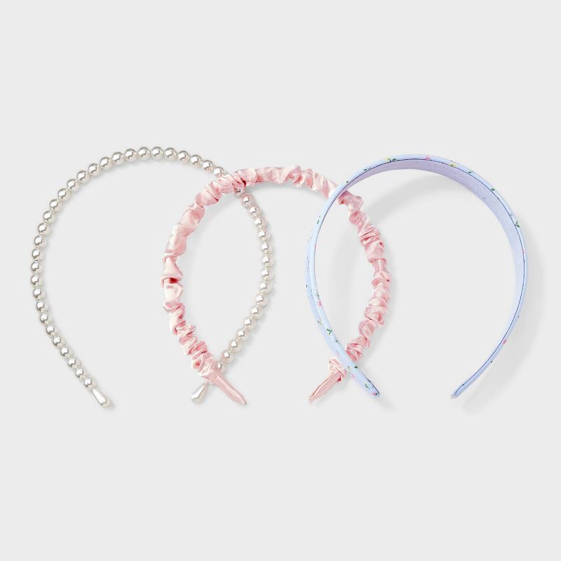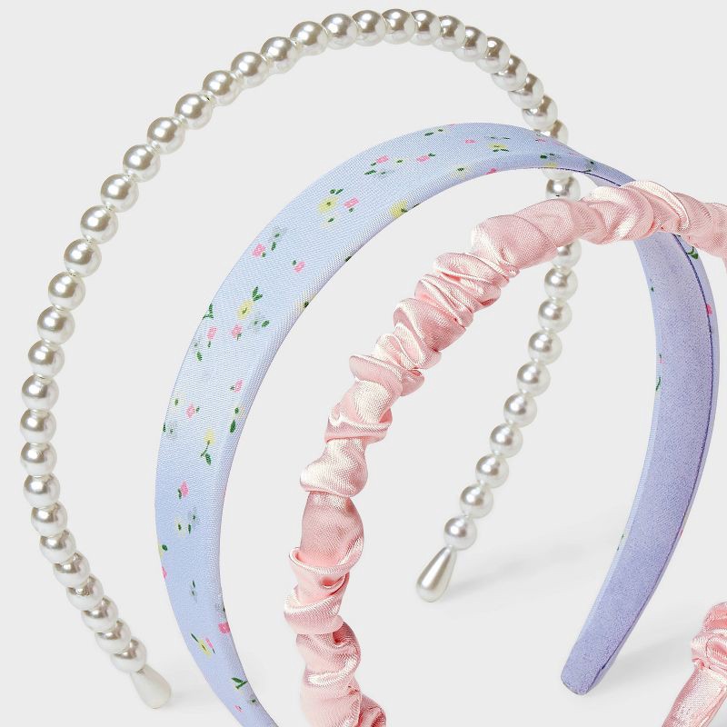 Girls' 3pk Headband Set with Ruched Floral and Pearls - Cat & Jack™