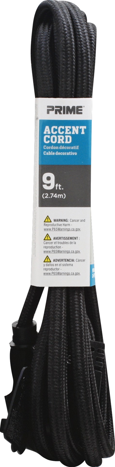 Prime Accent Cord Polarized 2 Prong Plug 9 Feet Midnight Black - Each