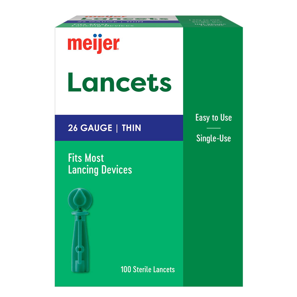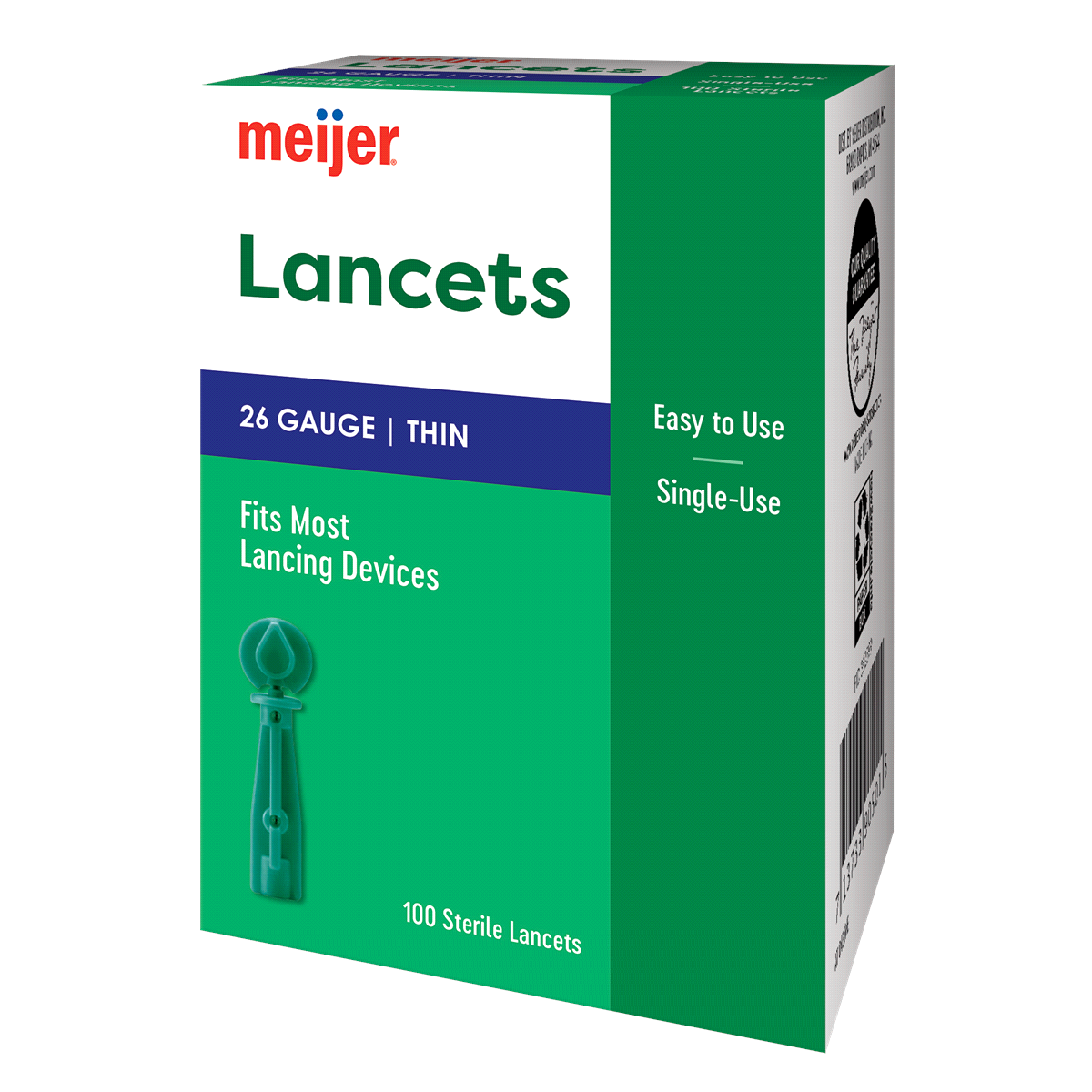 The Meijer Lancets are easy to use, thin, 26-gauge, single-use lancets that are compatible with most lancing devices. They are designed for capillary blood sampling and are sterile for safe use.
