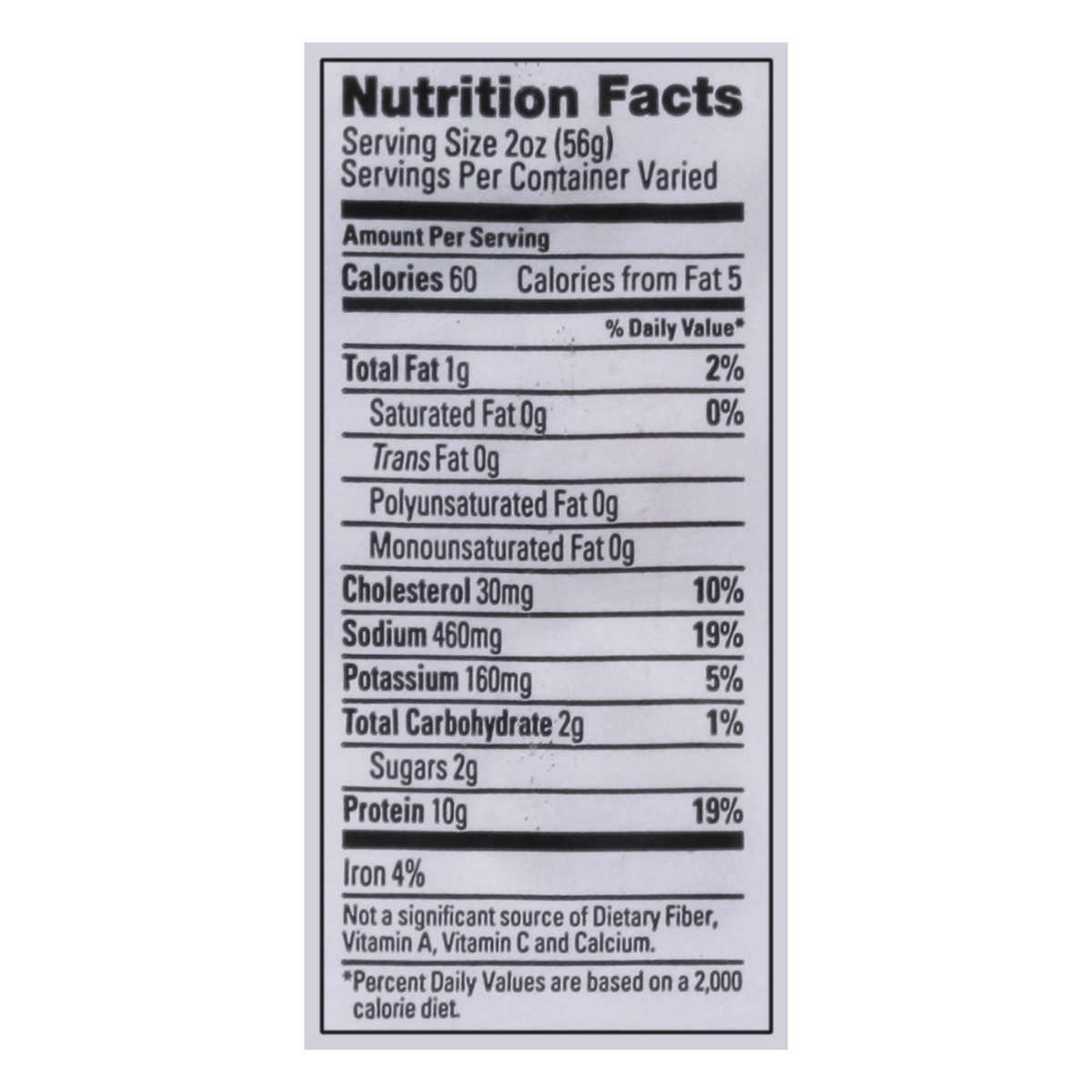 Cured with: Water, Sugar, Dextrose, Sea Salt, Less than 2% of Sodium Phosphate, Salt, Sodium Erythorbate, Sodium Nitrite.