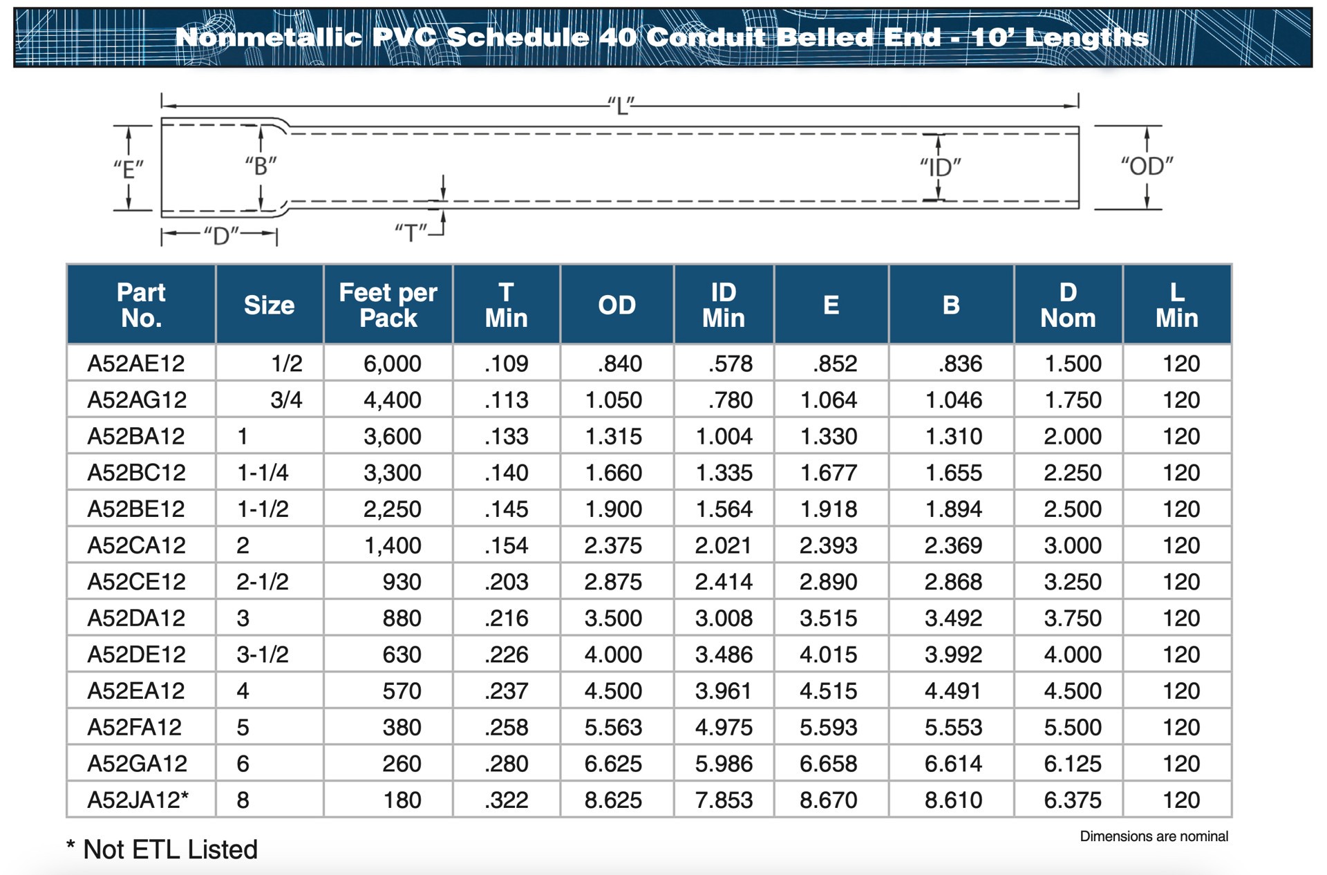 Nonmetallic PVC material which is corrosion, rust and sunlight resistant. ETL listed. Conforms to UL651 and NEMA TC-2. Rated for use with 90-degree C conductors. Made in USA.