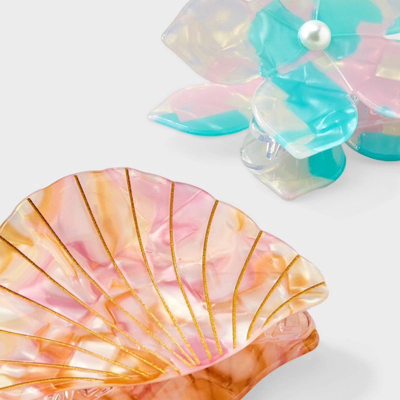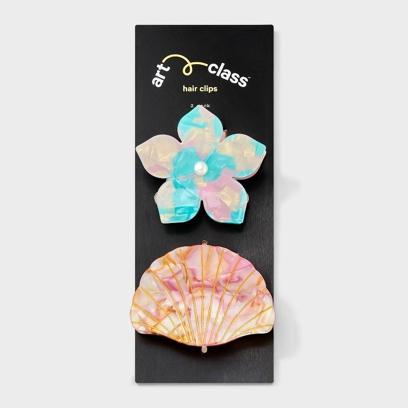 Girls' 2pk Hibiscus and Seashell Claw Clip Set - art class™