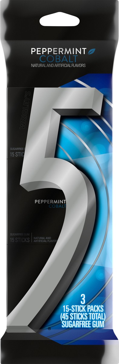 - Contains three (3) 15-stick packs of Sugar Free 5 Gum Peppermint Cobalt Chewing Gum Bulk PackChew your way to an intense minty flavor experience with 5 Gum Peppermint Cobalt Sugarfree GumImmerse yourself in head-to-toe stimulation by blasting your favorite playlist and chewing a stick of invigorating 5 Gum Peppermint Cobalt chewing gumA sleek 15-stick pack of mint gum is designed to keep you on the go. It can fit anywhere and can be enjoyed everywhereShare the chilling experience of 5 Gum Peppermint Cobalt with friends