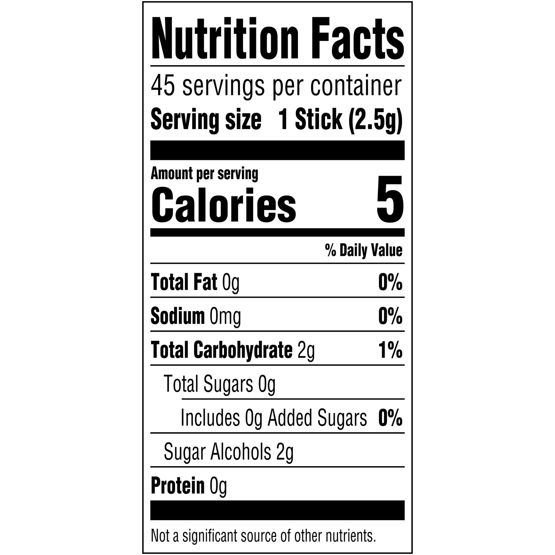 Sorbitol, Gum Base, Glycerol, Natural And Artificial Flavors, Less Than 2% Of: Hydrogenated Starch Hydrolysate, Aspartame, Mannitol, Acesulfame K, Soy Lecithin, Color (Blue 1 Lake), Bht (To Maintain F…