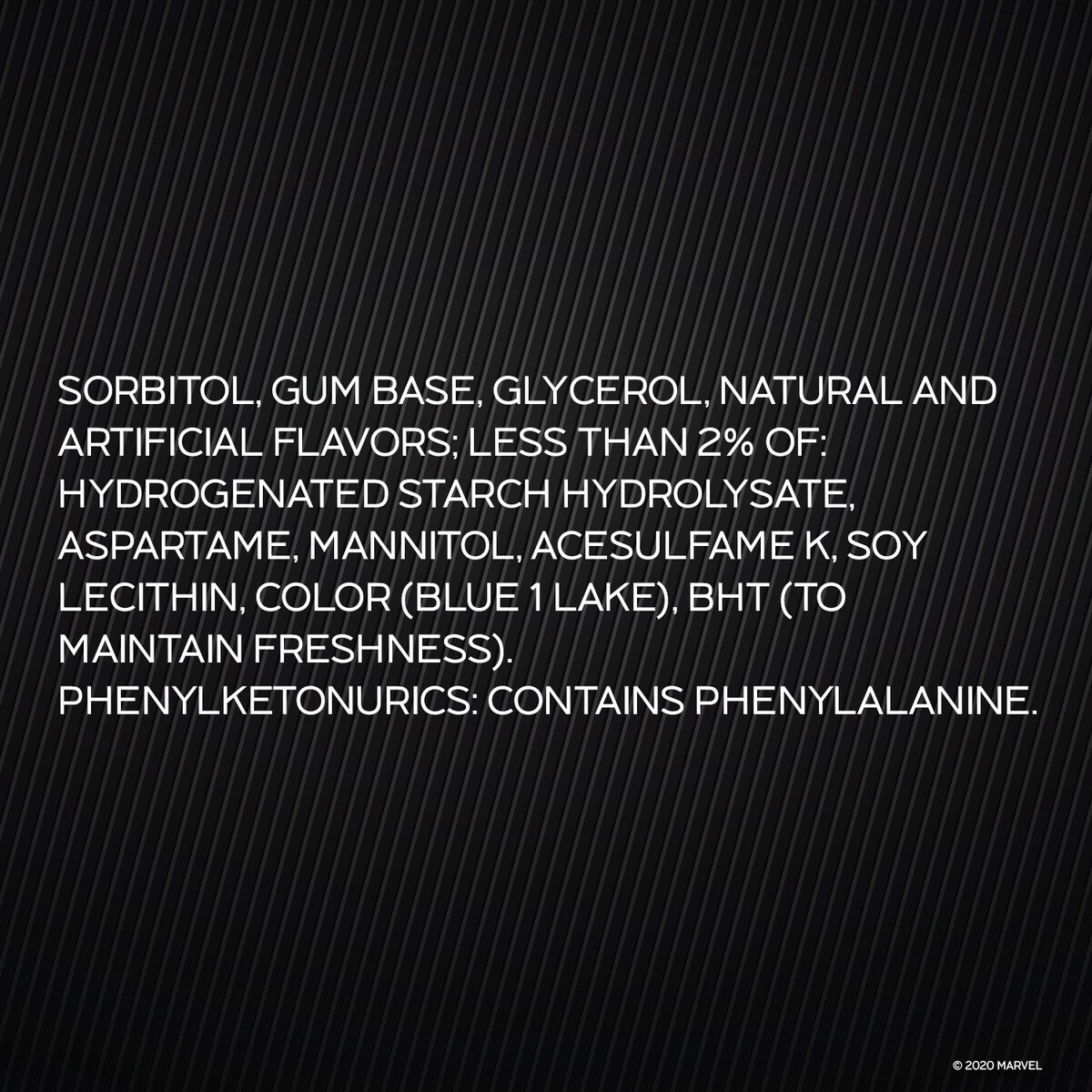 Sorbitol, Gum Base, Glycerol, Natural And Artificial Flavors, Less Than 2% Of: Hydrogenated Starch Hydrolysate, Aspartame, Mannitol, Acesulfame K, Soy Lecithin, Color (Blue 1 Lake), Bht (To Maintain F…
